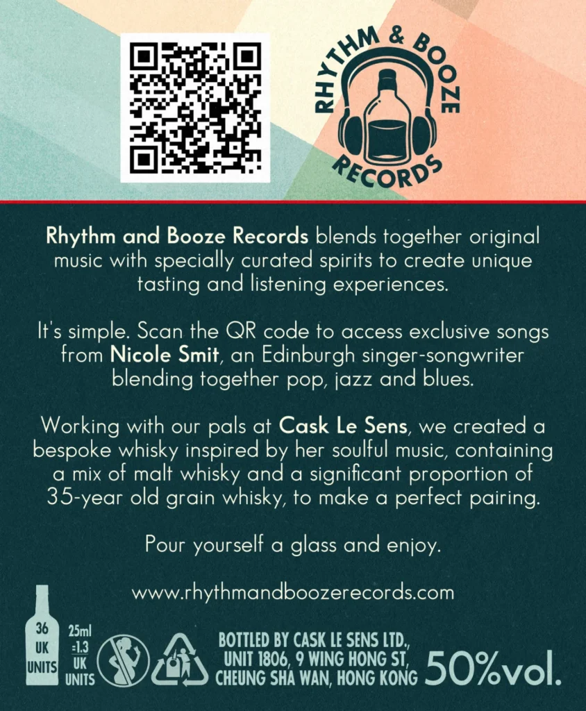 This is the first Rhythm and Booze Records release to reverse the creative process: rather than curating a ready-to-bottle spirit to pair with the featured tunes, the creation of this whisky was directly inspired by Nicole’s music and blended together by Cask Le Sens co-founder Winnie Ng. The result is a blend that mirrors Nicole’s sound – initially sweet, easygoing and accessible, before revealing surprising depth and playful complexity the longer you sit with it.