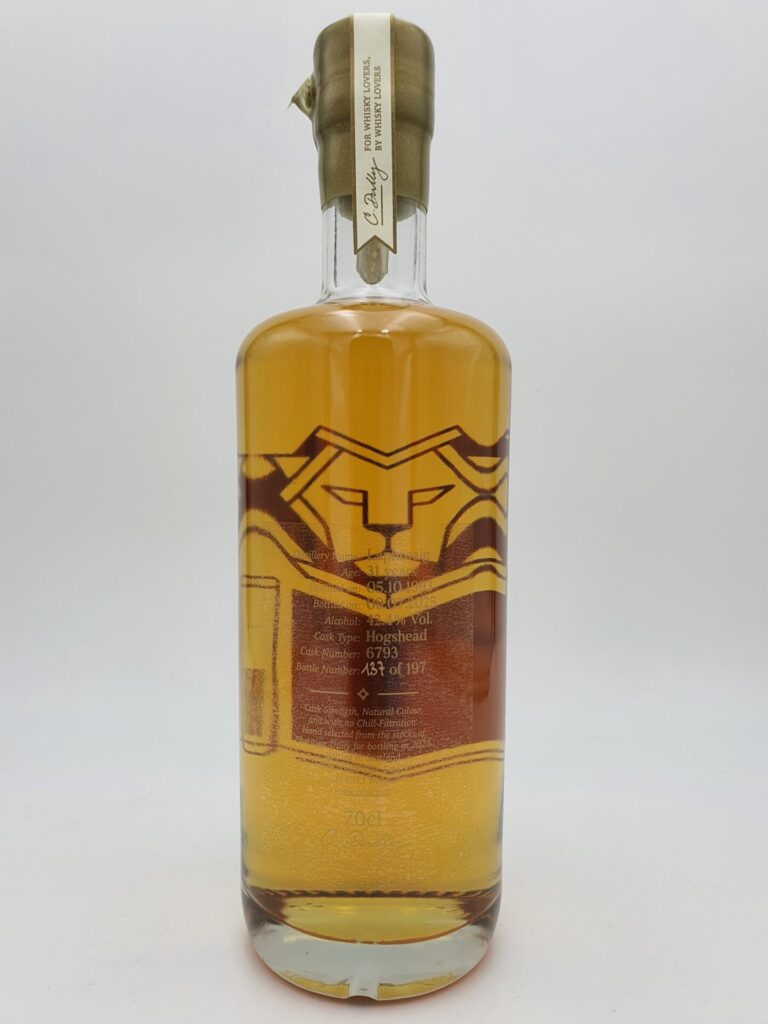 Dieser 31-jährige Laphroaig verkörpert eindrucksvoll die Philosophie von C. Dully: kompromisslose Qualität und pure Authentizität. Drei Jahrzehnte Reifung verleihen ihm eine seltene Balance aus sanftem Torf, maritimer Tiefe und reifer, tropischer Frucht – ein Musterbeispiel für den „Old Style Laphroaig“ der 1990er Jahre.