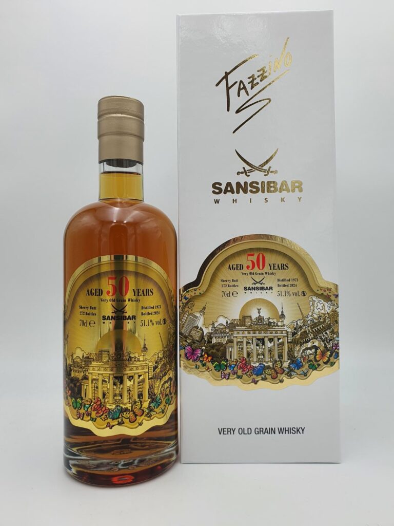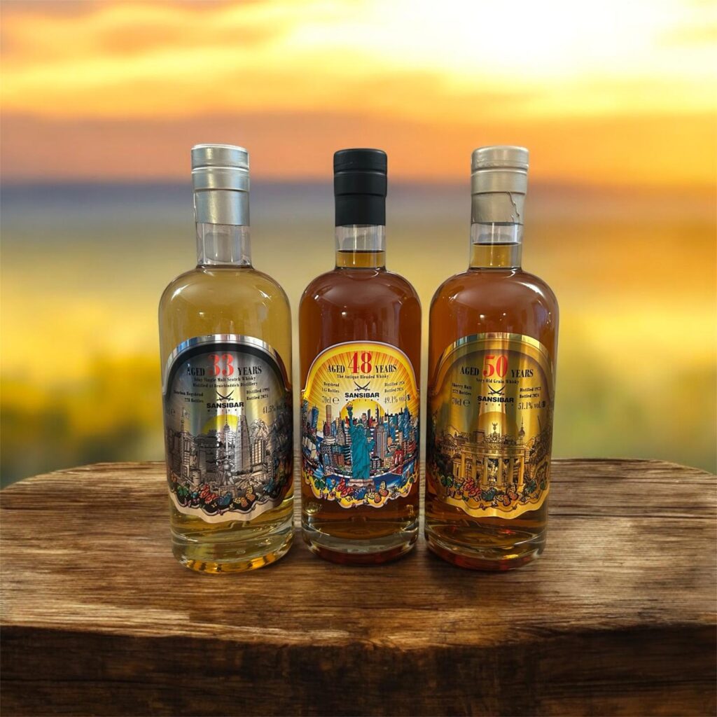 Drei Whiskys, die Kunstwerke des 3D Pop-Art-Künstler Charles Fazzino aus New York zieren, die aber mit ihren Daten selbst als Whisky-Kunstwerke betrachtet werden können, bringt Sansibar Whisky pünktlich zur Limburg-Messe auf den deutschen Markt. Es handelt sich dabei um einen 50 Jahre alten Grain, einen 33 Jahre alten Bruichladdich und einen Blended Whisky mit 48 Jahren.