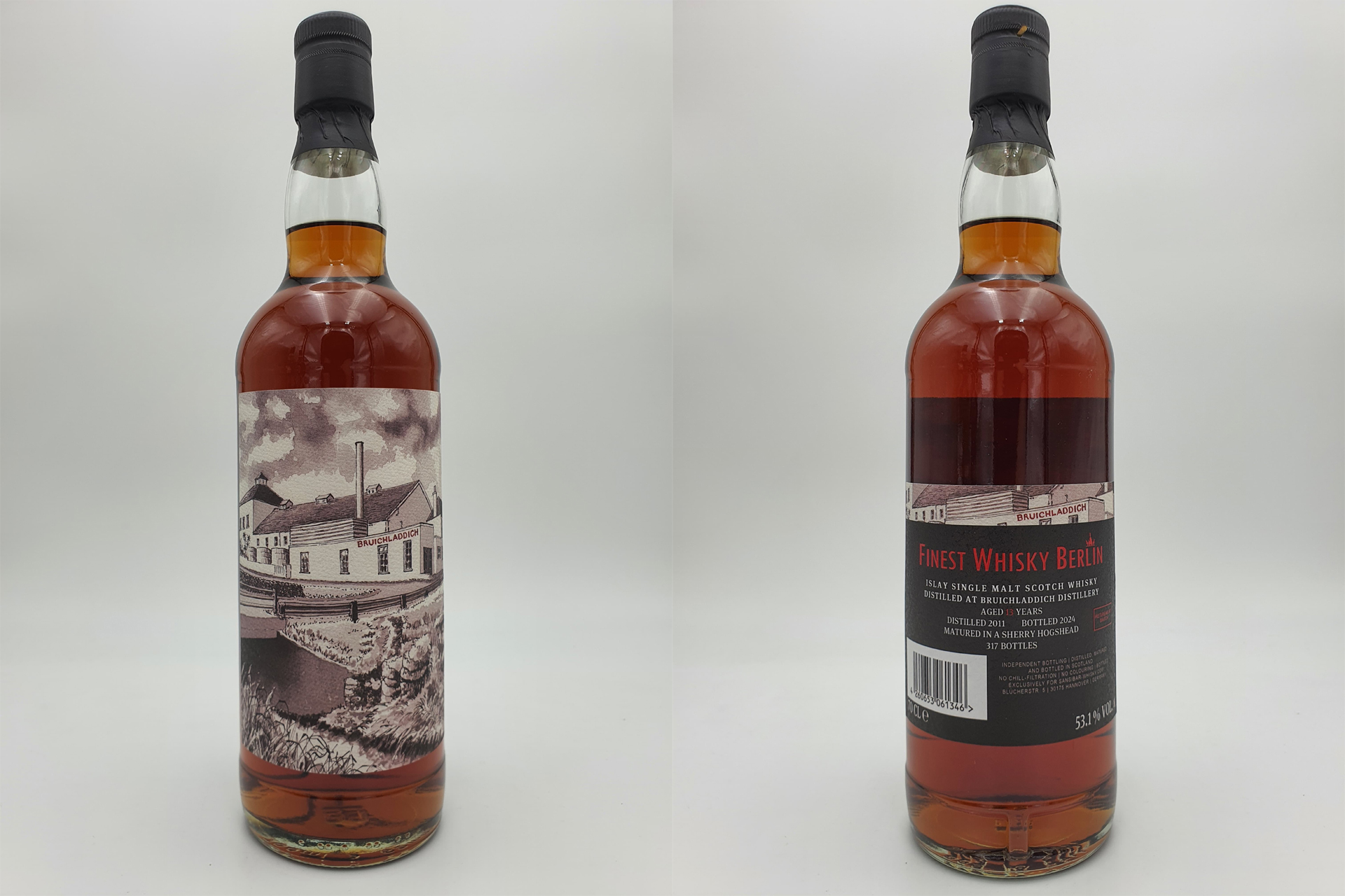 Dieser Bruichladdich reifte von 2011 – 2024 in einem Sherry Hogshead und wurde ohne Farbstoffe und Kühlfiltration in 317 Flaschen mit 53.1% Alkohol abgefüllt.