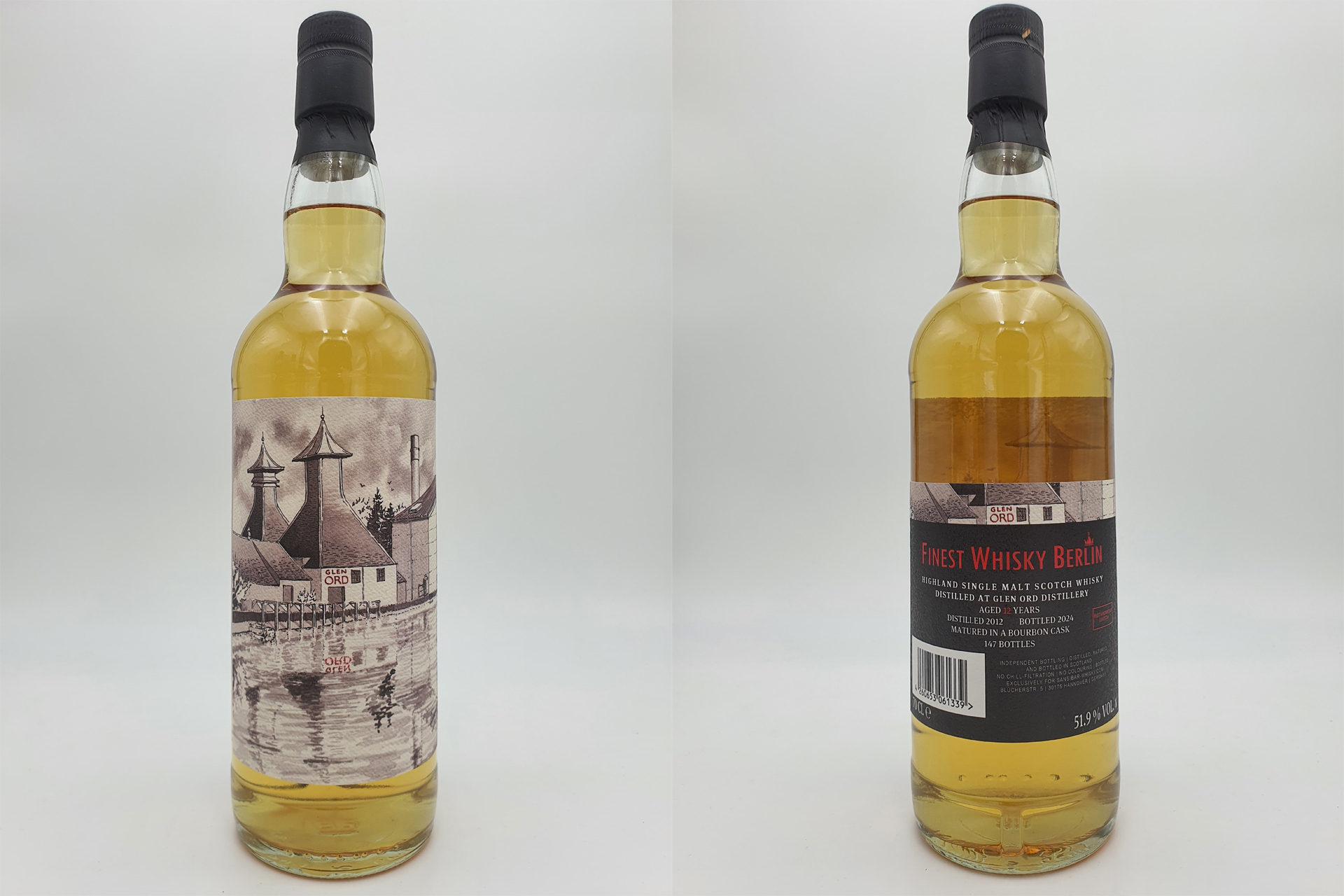 Der Whisky selbst stammt aus der Glen Ord Distillery, einer Destillerie Schottlands mit langer Tradition. Gelegen auf der Halbinsel Black Isle, in den nördlichen Highlands, ist sie bekannt für eher milde Whiskys. Glen Ord Abfüllungen sind eher selten, da der Hauptteil der Brennerei für Blended Whisky der Marke Diageo produziert wird.