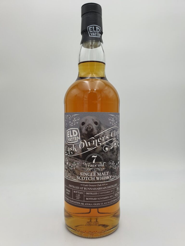 Dieser Staoisha – die torfige Seite der Bunnahabhain-Brennerei – wurde 2017 destilliert und 2024 von Svenska Eldvatten in Fassstärke abgefüllt. Gereift in einem einzelnen Sherry Butt, verbindet dieser kraftvolle Islay-Malt intensiven Rauch mit der tiefen, fruchtbetonten Komplexität eines exzellenten Sherryfasses. Mit eindrucksvollen 63,2 % Volumenalkohol präsentiert er sich ungezähmt, kompromisslos und doch erstaunlich ausgewogen.