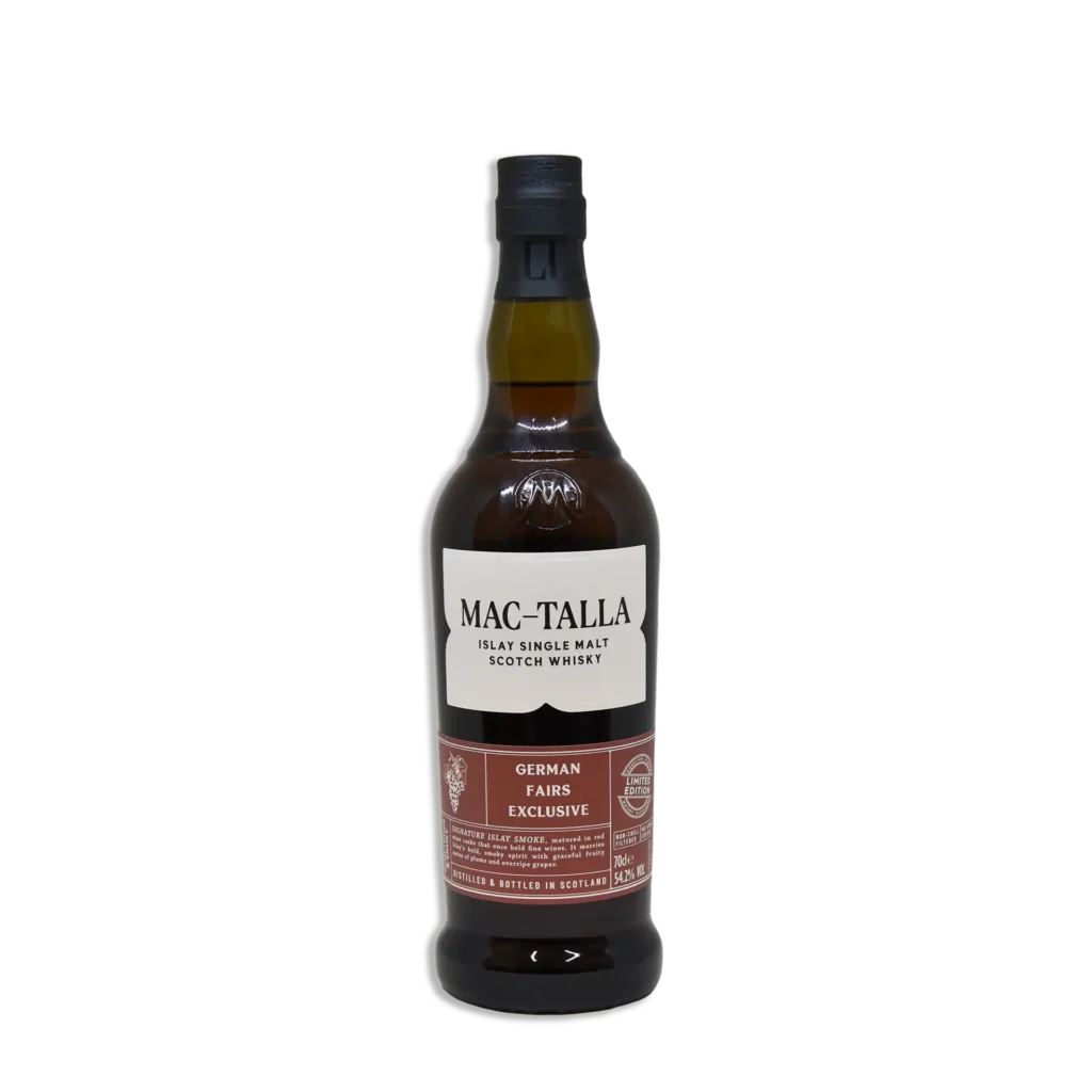 Mit der Limited Edition Red Wine Cask präsentiert Mac-Talla eine exklusive Abfüllung, die ausschließlich für deutsche Whiskymessen aufgelegt wurde. Diese Edition verbindet die kraftvolle, unverkennbare Rauchsignatur Islays mit der fruchtbetonten Tiefe ausgewählter Rotweinfässer und richtet sich an Genießer, die Islay-Whisky jenseits klassischer Fassprofile entdecken möchten.