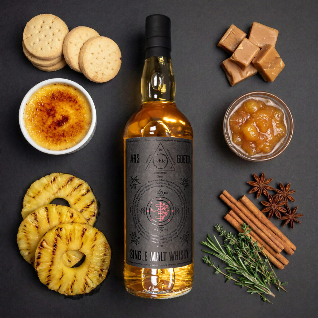 Mit der schwarzmagischen Whisky-Serie Ars Goetia beschwört whic mit jeder dämonischen Abfüllung höllisch gute Aromen ins Nosingglas. Passend dazu ziert jede Flasche ein mystisch anmutendes Etikett ganz in Schwarz. Entdecken Sie die geheimnisumwobenen Geschmacksnoten, die in jeder Flasche verkorkt darauf warten, entfesselt zu werden. Auch an den dunkelsten Tagen des Jahres entfacht der Genuss der Ars Goetia ein loderndes Feuer.