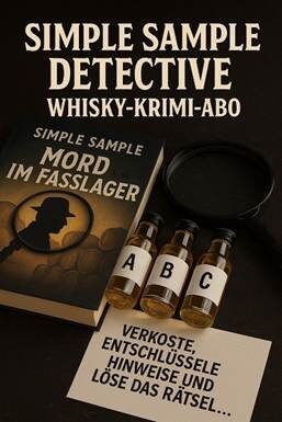 Mit dem Whisky Krimi-Abo wirst du jeden Monat zum Whisky-Detektiv: Drei geheimnisvolle Whisky-Proben (je 2 cl), blind abgefüllt, laden dich zum spannenden Rätselspiel ein. Begleitet werden die Proben von einer exklusiven, atmosphärischen Krimi-Kurzgeschichte voller versteckter Hinweise auf die Whiskys.