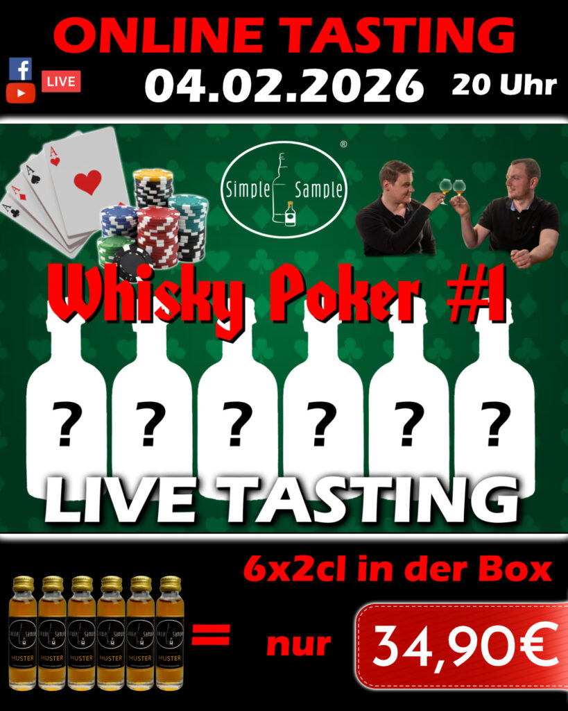 Eine Blindverkostung der etwas anderen Art bietet Simple Sample mir seinem Live-Onlinetasting am 4. Februar 2026 auf Facebook und Youtube: Während der Verkostung kann man auf die diversen Whiskys setzen und dabei seinen Favoriten bestimmen. Und das in Echtzeit.