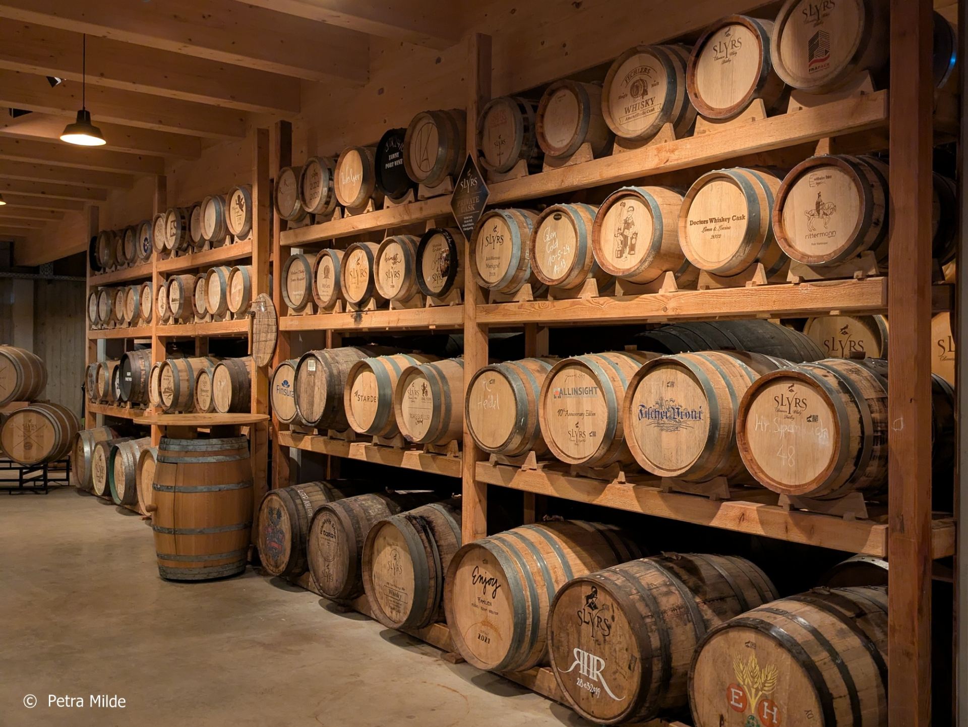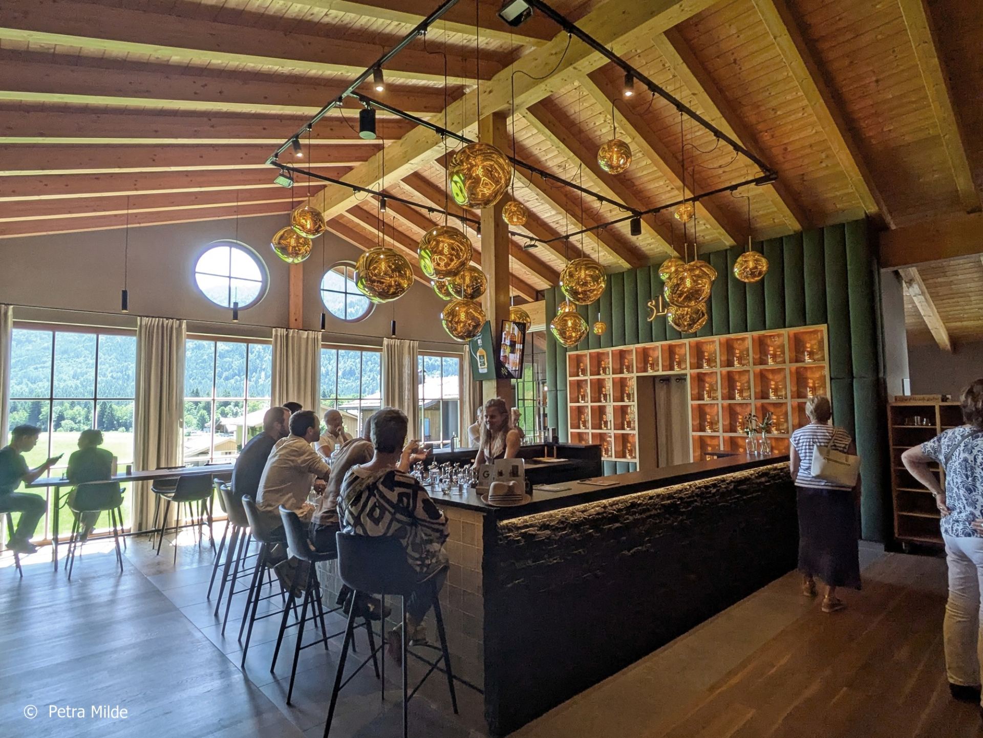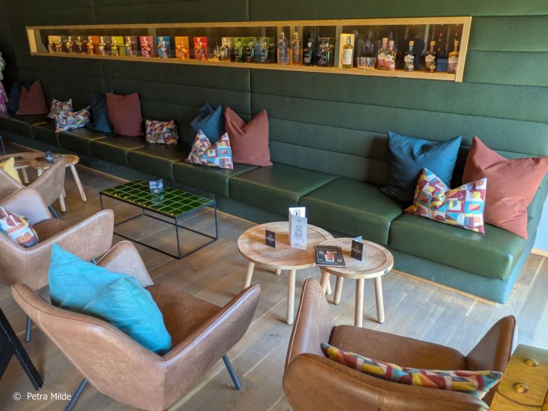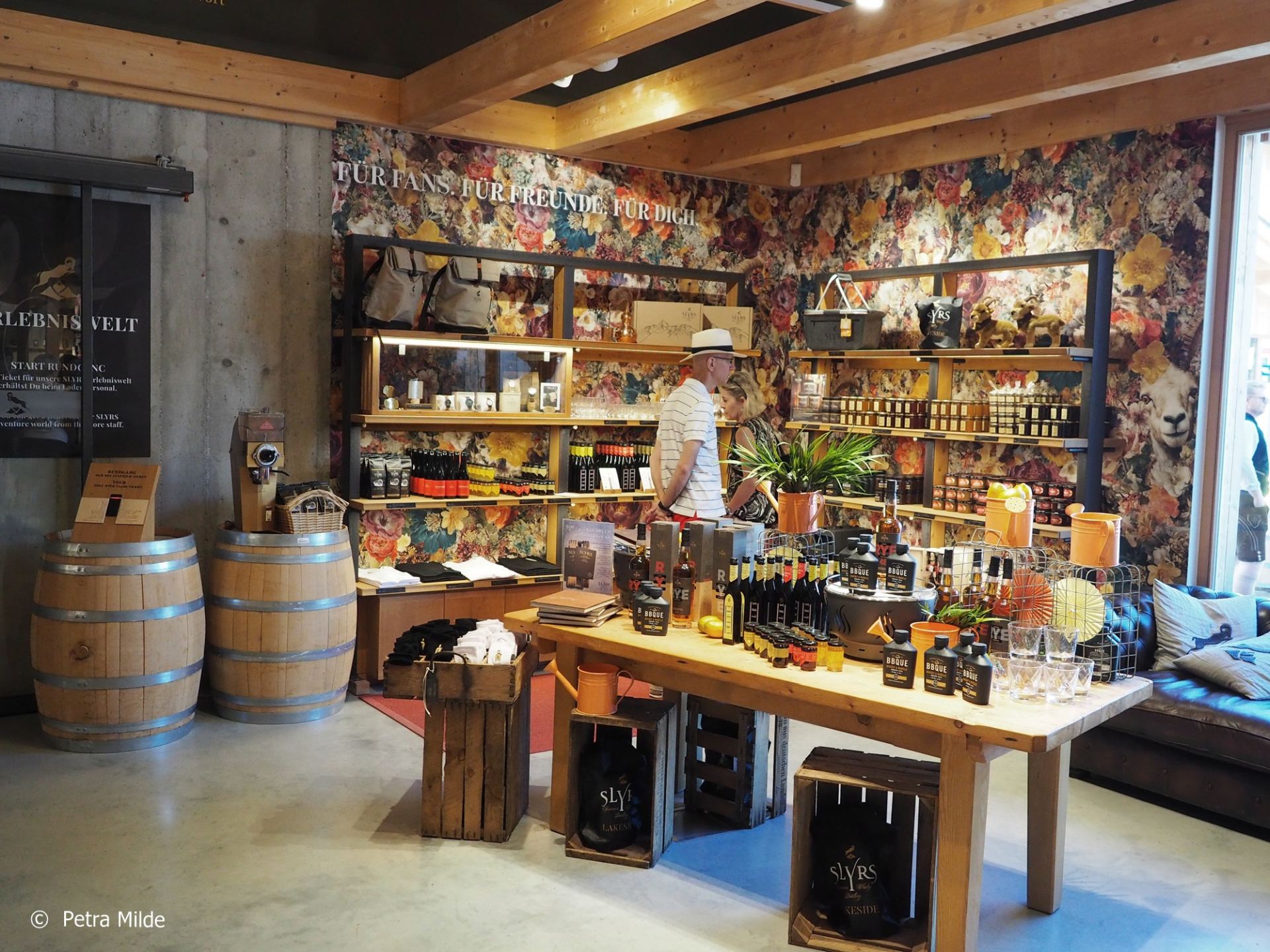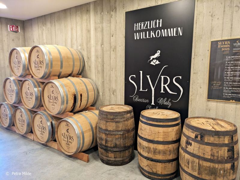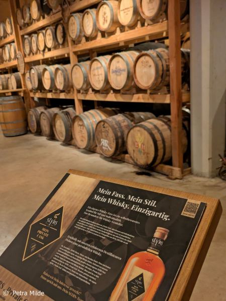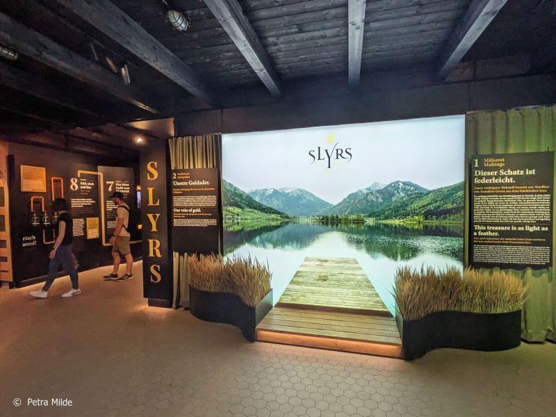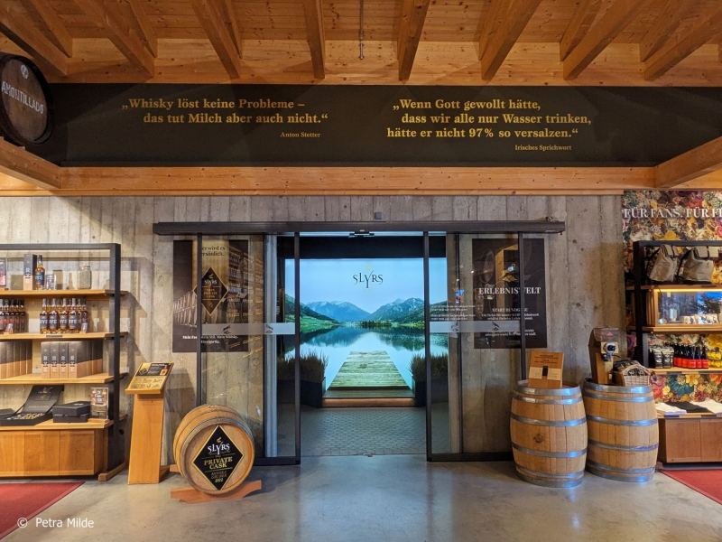 Im Tastingraum, der über eine neue Bar und eine geniale Aussicht nach draußen auf die Landschaft und nach drinnen auf gelagerte Fässer verfügt, konnte die ganze Vielfalt des Slyrs Whiskys verkostet werden. Spezielle Master Classes sorgten für vertiefende Einblicke und im Shop konnte man sich mit seinen Whisky-Favoriten eindecken.