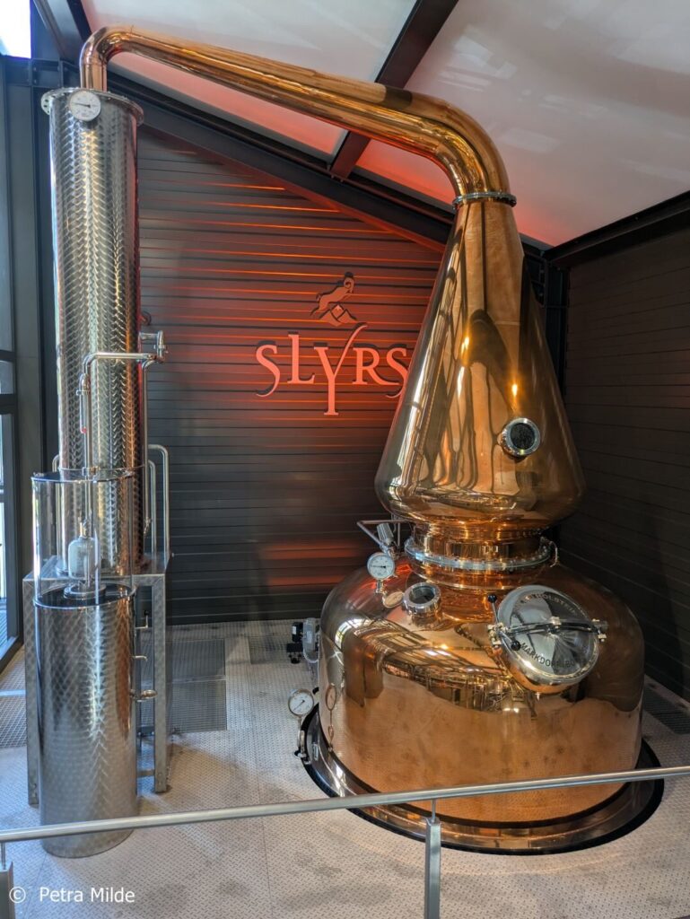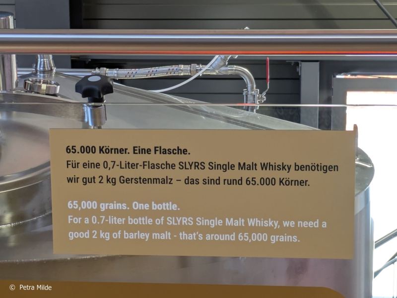 Am Tag der offenen Brennerei wurde nicht produziert, wenn auch die Spirit Still munter eine klare Flüssigkeit verwirbelte. Als Besucher waren wir dankbar dafür, es war auch so warm genug an diesem Tag. In der nächsten Zeit heißt es dann für das Team, die nötigen Rädchen zu drehen und Feineinstellungen vorzunehmen, um wieder voll einzusteigen in die Produktion. Zwar herrscht im Moment noch kein Mangel, es lagern rund 4.000 Fässer mit Slyrs Single Malt und Rye, doch die Nachfrage nach deutschem Whisky ist groß – beste Voraussetzungen, dass die Investition in die neue Brennerei schnell Früchte trägt.