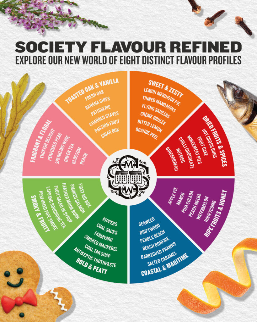 The new chapter in the Society’s flavour first philosophy, sees refinement from 12 to eight flavour profiles. This reflects a shift away from previous age-led categories like ‘Old & Dignified’ and ‘Young & Spritely’ towards an even more flavour-first focus, allowing for a more intuitive way for whisky fans to explore the range.