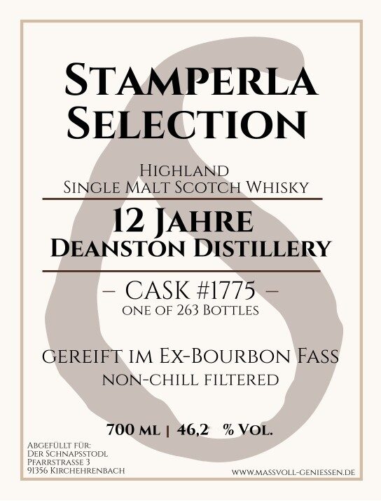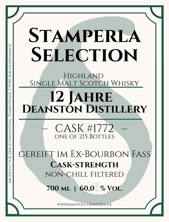 Deanston 12 Jahre Cask #1775 – Stamperla Highland Single Malt Whisky im Ex-Bourbon-Fass