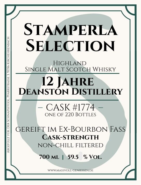 Deanston 12 Jahre Cask #1774 – Stamperla Highland Single Malt Whisky im Ex-Bourbon-Fass