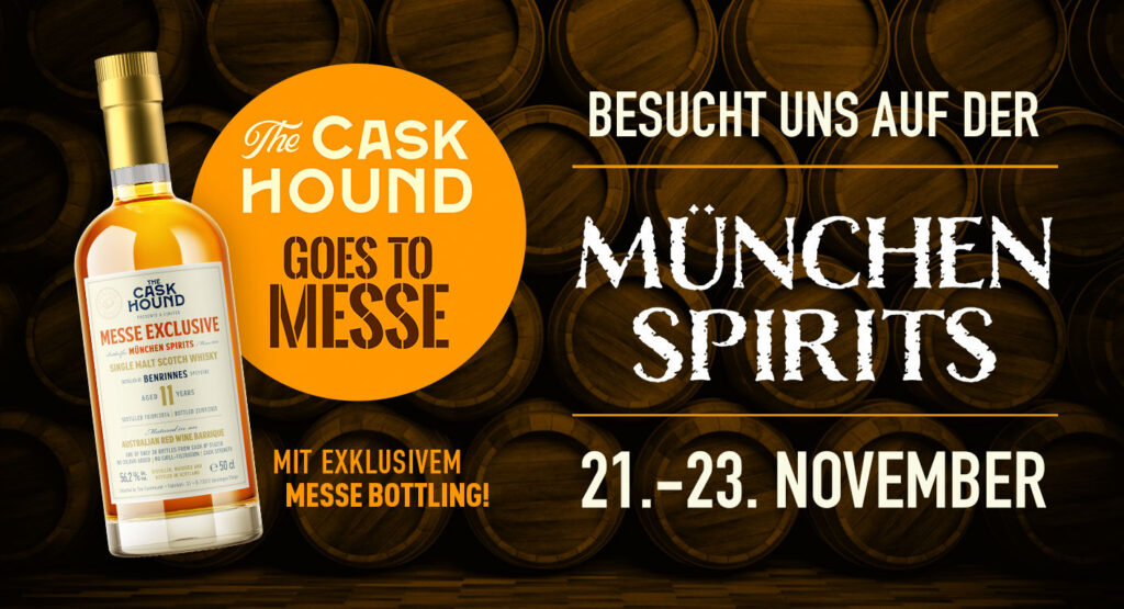 Wenn ab heute in München die München Spirits stattfindet, dann ist Tilo Schnabel aka The Caskhound mit dabei – und natürlich auch mit einer speziellen Messeabfüllung: Es ein 11 Jahre alter Benrinnes aus einem speziell für Messeabfüllungen reservierten Fass – und die letzte Gelegenheit, diesen Whisky aus einem Australian Red Wine Barrique zu ergattern.