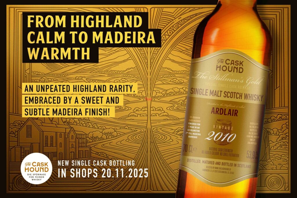 Diese Einzelfassabfüllung steht beispielhaft für THE CASKHOUND: ehrlicher Whisky in Fassstärke – naturbelassen, ungefiltert, ungefärbt. Ab Donnerstag, 20. November 2025, ist unser Madeira-veredelter ARDLAIR exklusiv im Online-Shop und bei ausgewählten Fachhändlern erhältlich.