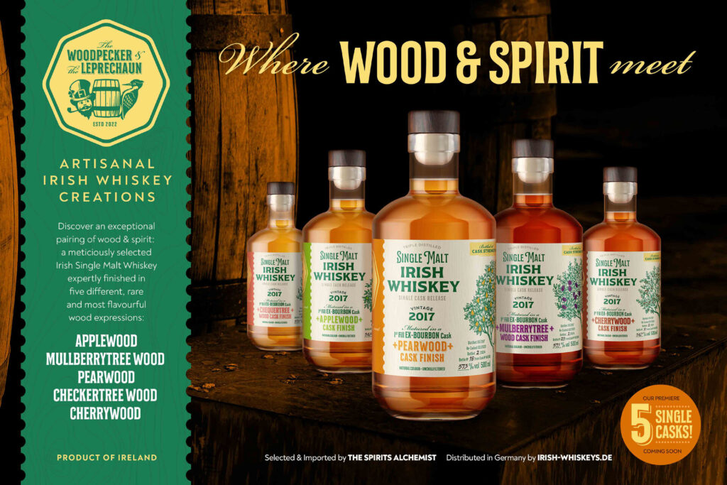 “Where Wood and Spirit meet” – unter diesem Motto brachten der unabhängige Abfüller Sebastian Büssing und Irish Whiskey-Experte Neil Saad mit The Woodpecker & The Leprechaun eine Reihe außergewöhnlicher Einzelfassabfüllungen auf den Markt. Dabei steht die Kraft des Holzes ganz im Fokus der fünf Whiskeys. Denn für die Finishes verwendeten die beiden seltene Holzarten wie Apfel oder Elsbeere. Wie allein das Holz einen Whiskey formt und dass es nicht immer die viel beschworene Eiche sein muss, können Genießer in den kommenden Wochen live erfahren. Denn The Woodpecker & The Leprechaun sind auf Deutschlandtour. Hierbei ist der erste Termin bereits in der kommenden Woche.