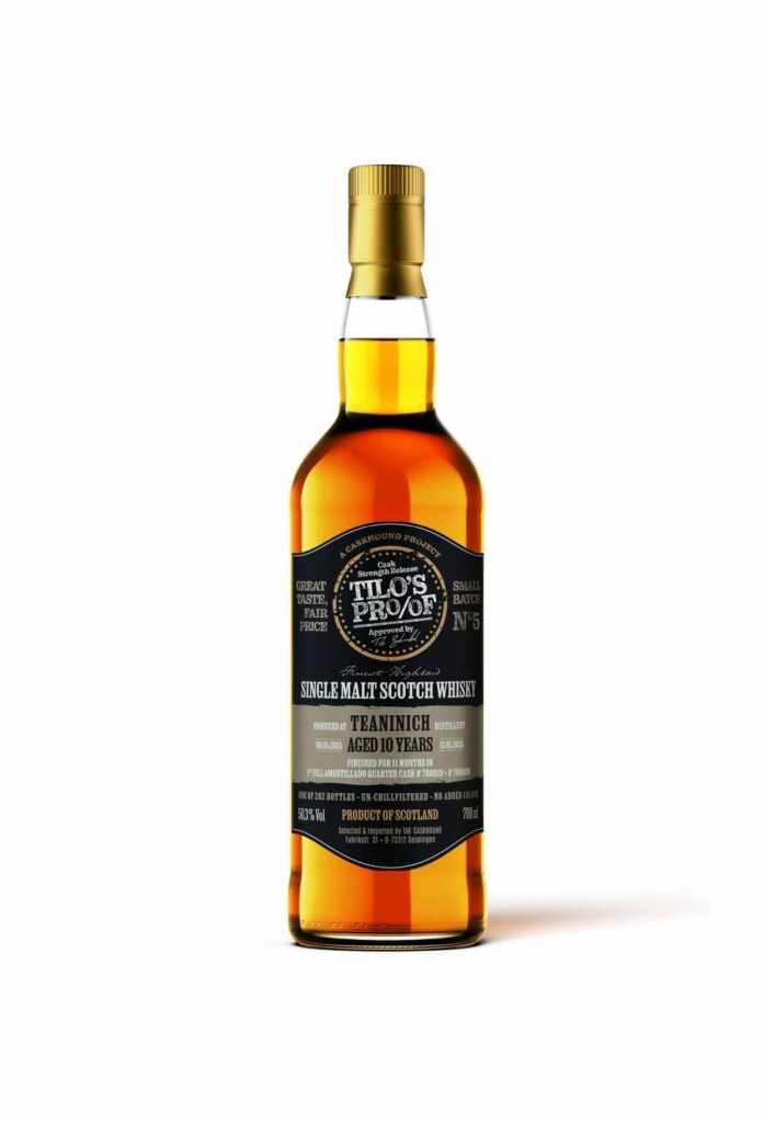 Mit einem zehn Jahre alten und mit 50,3% vol. Batchstärke abgefüllten Teaninich, gefinisht in zwei Quarter Casks, die zuvor mit Amontillado-Sherry befüllt waren – das ist das neueste und damit fünfte Angebot von Tilo Schnabel in seiner Serie Tilo’s Proof.