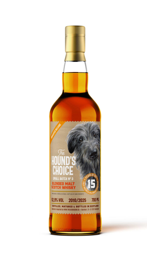 Der zweite Whisky stammt aus der HOUND’S CHOICE-Serie, mit der Tilo Schnabel gezielt ehrliche, gut trinkbare Whiskys in den Fokus stellt. Small-Batch-Abfüllungen, die nicht auf künstlichen Hype oder Limitierungsdruck setzen, sondern darauf, regelmäßig eingeschenkt zu werden. Unser Blended Malt Batch #3 wurde vollständig in einem Sherry Puncheon gereift. Der Whisky ist warm, rund und zugänglich, mit Tiefe und Textur, aber ohne überladen zu sein. Ein Dram, der unkompliziert Spaß macht, auch beim zweiten Glas noch funktioniert und genau deshalb seinen Platz als verlässlicher Winterbegleiter findet.
