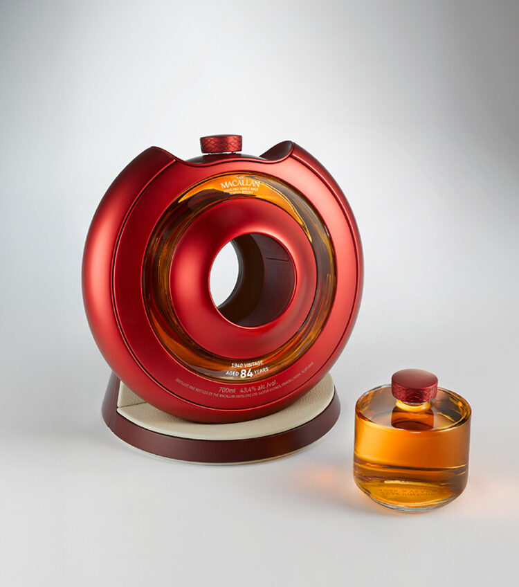 TIME : SPACE 1940 vereint zwei Jahrgänge in einem ikonischen, doppelkammrigen Dekanter: eine 1940 destillierte Abfüllung, die über acht Jahrzehnte in europäischen Eichenfässern reifte, sowie ein 2018er Jahrgang, der unter modernsten Produktionsstandards entstand. Die Karaffe ist inspiriert von einer Zeitmaschine und wurde entworfen, um das Zusammenspiel von Vergangenheit und Zukunft visuell greifbar zu machen. Mit nur 200 Flaschen weltweit zählt TIME : SPACE 1940 zu den seltensten Abfüllungen von The Macallan.