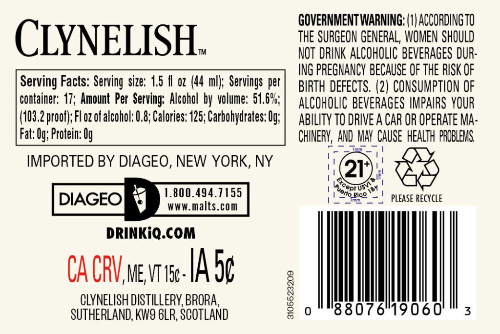 In die Flaschen kommt Clynelish 18 yo mit starken 51,6 % Vol, dessen Label so aussehen: