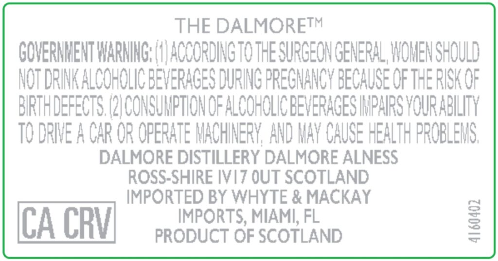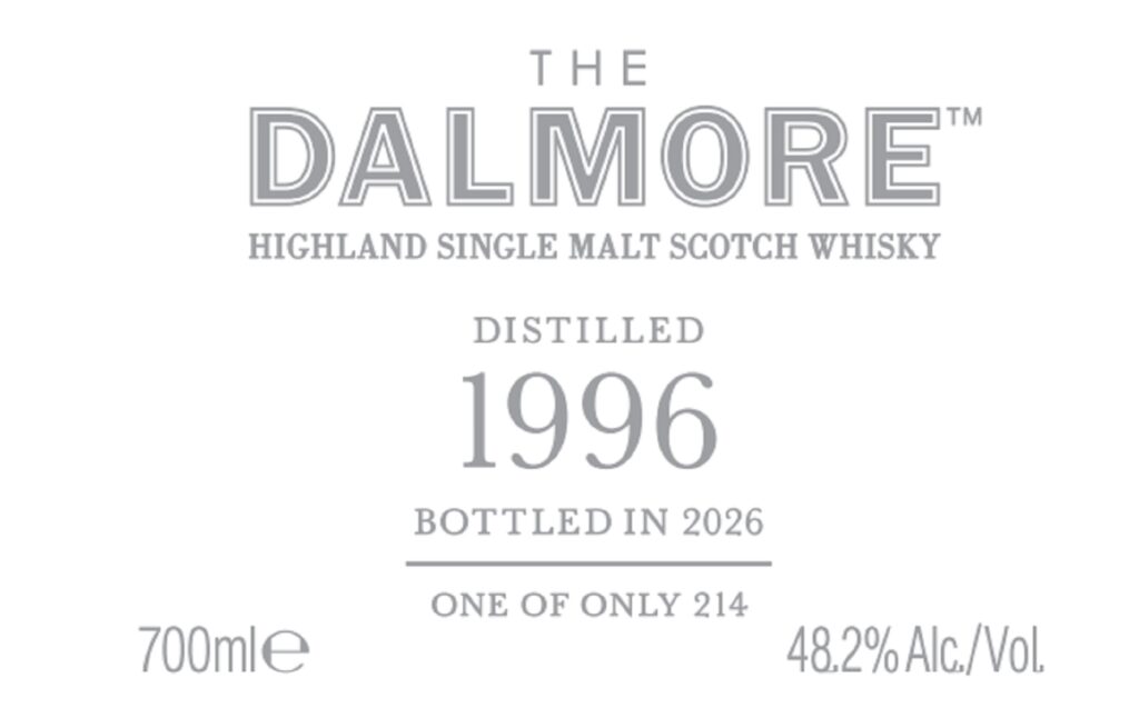 Ein wohl 30 Jahre alter Dalmore ist in der us-amerikanischen TTB-Datenbank als neue Abfüllung aufgetaucht – neu deshalb, weil er erst in diesem Jahr abgefüllt wurde oder wird. 30 Jahre alte Dalmore sind keine Okkasion, und wir schätzen, dass auch dieses Bottling, Dalmore 1996, das auf 214 Flaschen limitiert ist, sich im mittleren vierstelligen Euro-Bereich bewegen wird. Abgefüllt ist er jedenfalls mit 48,2% vol. – und die Etiketten präsentieren sich wie folgt:
