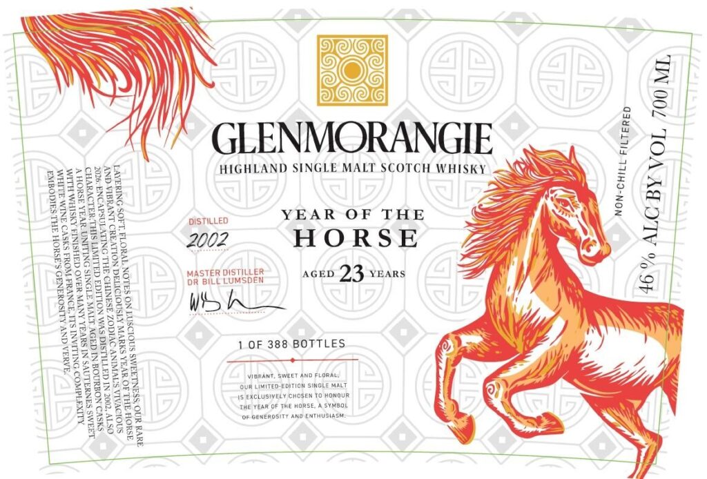 Am 12. Februar 2026 beginnt in China ein neues Jahr (man rechnet dort nach dem Mondkalender), und diesmal ist es das Jahr des Pferdes. Es steht damit mehr als nur zu vermuten, dass der neue Glenmorangie 23yo Year of The Horse, den wir in der us-amerikanischen TTB-Datenbank gefunden haben, mit diesem Ereignis zusammenhängt, also eine Neujahrsabfüllung der Highland-Brennerei ist.