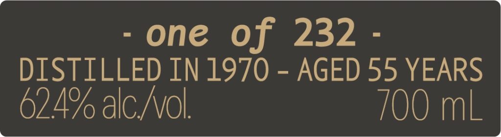 Dass noch einmal ein Glenury Royal auf dem Markt erscheint, war eigentlich nicht mehr wirklich zu erwarten. 2020 erschienen die beiden letzten Bottlings von Gordon & MacPhail, 2021 einer in der Casks of Distinction Serie von Diageo und 2022 der überhaupt letzte bislang als Commemorative Distillery Bottling. Und ebenjenes Unternehmen, nämlich Diageo, legt in diesem Jahr die Rare Series auf (vom darin erscheinenden Caol Ila 1983 und Talisker 1992 haben wir vor vier Tagen hier berichtet), und in ihr erscheint auch ein Glenury Royal aus der seit 1985 geschlossenen Brennerei in den Highlands. Der Glenury Royal 1970 Rare Series erscheint in einer Auflage von 232 Flaschen und hat eine Fassstärke von 62,4% vol. behalten trotz seines Alters von 55 Jahren (eine Eigenschaft, die den Abfüllungen aus diesem Jahr gemein zu sein scheint). Über seinen Preis kann man nur spekulieren – und wird wahrscheinlich eher zu tief greifen.