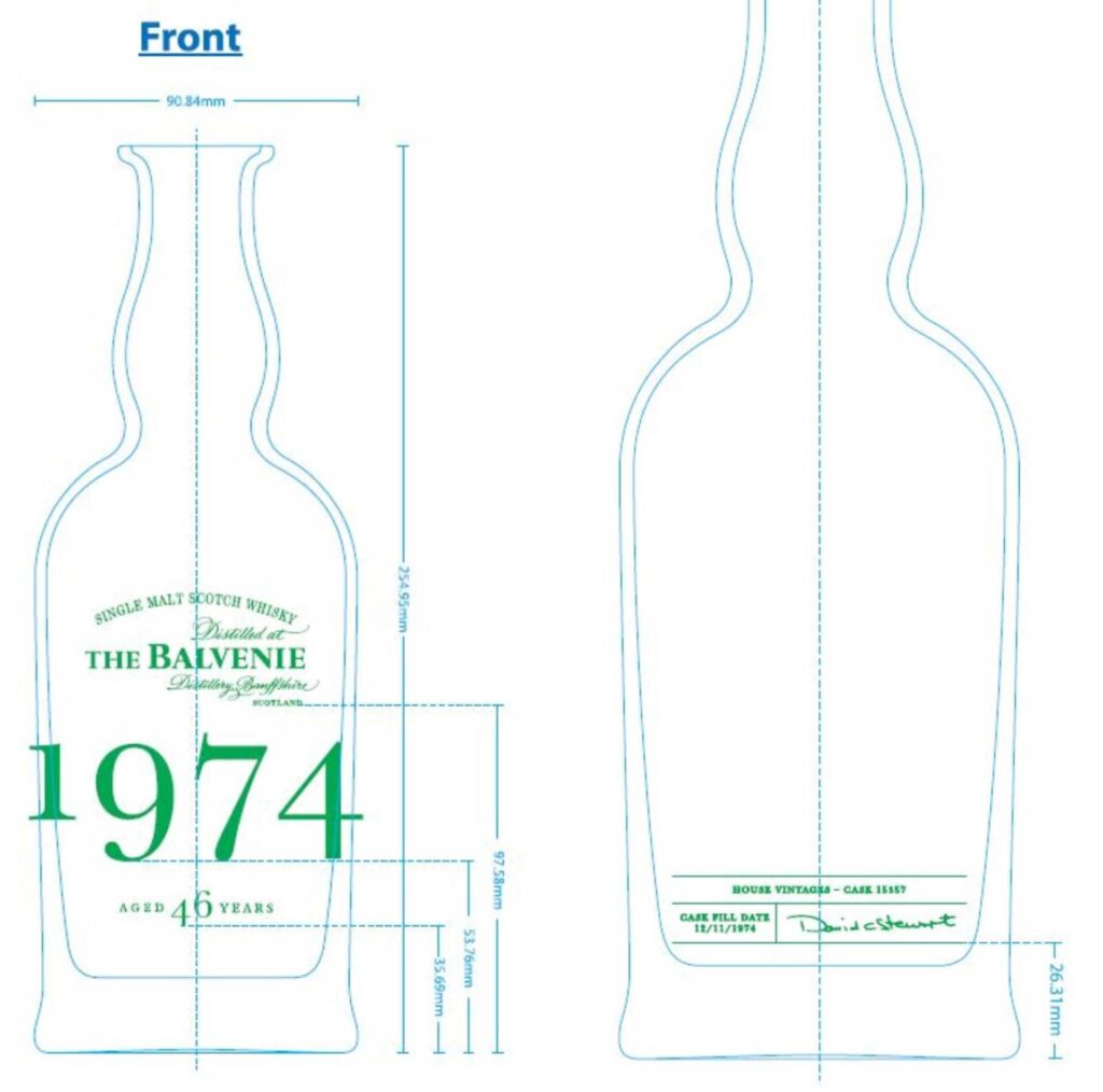 Bereits in der vergangenen Woche entdeckten wir die Etiketten zweier Vintage Cask Bottlings in der us-amerikanischen TTB-Datenbank. Heute können wir diese noch um das Label des The Balvenie 1974 ergänzen. Der Single Malt stammt aus dem Fass mit der Nummer 15357, welches am 12. November 1974 befüllt wurde. Mit einem Alter vom 46 Jahren und einem Alkoholgehalt von 44,6 % Vol. wurde der Whisky dann abgefüllt. Anders als bei den zwei Abfüllungen aus der letzten Woche, für die Kelsey McKechnie verantwortlich scheint, trägt The Balvenie 1974 die Unterschrift des sich mittlerweile im Ruhestand befindlichen Malt Master David C. Stewart.