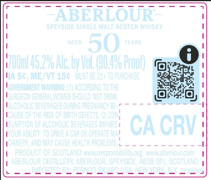 Diesmal geht es um den ältesten bislang abgefüllten Aberlour: Der Aberlour 50yo ist gleich um ganze 6 Jahre älter als der bisherige Rekordhalter, der Aberlour 1975 aus der Cellar Collection. Er wird mit 45,2% vol. Alkoholgehalt abgefüllt werden – mehr verraten die Etiketten leider nicht, aber es wird dazu sicher eine offizielle Ankündigung mit allen Details geben: