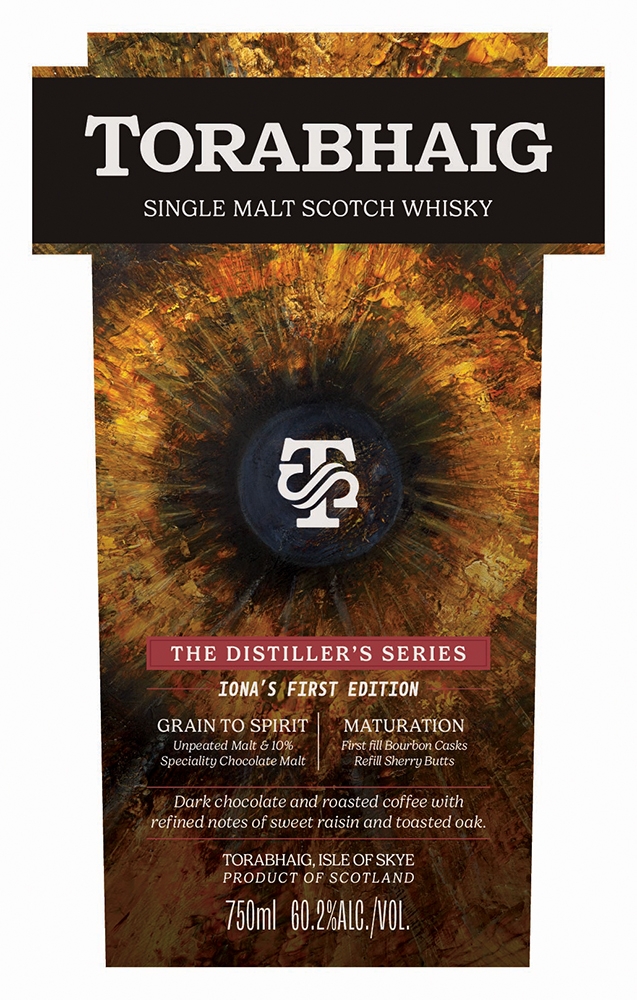 Und dann haben wir für Sie eine neue Serie von Abfüllungen der Destillerie Torabhaig auf Skye. Der Torabhaig The Distiller’s Series Iona’s First Edition ist Iona Macphie gewidmet, die seit 2017 im Team ist und zuvor bei Talisker als Tourguide gearbeitet hat. Von ihr stammt auch das Artwork für die Flasche – ein abstraktes Gemälde. Der mit 60,2 vol. Alkoholstärke abgefüllte ungetorfte Whisky stammt aus First Fill Bourbon Casks und Refill Sherry Casks und wurde mit 10% Chocolate Malt erzeugt. Hier die Etiketten:
