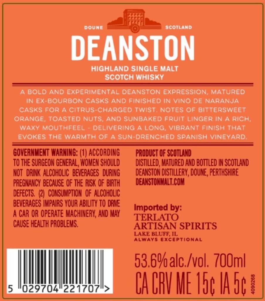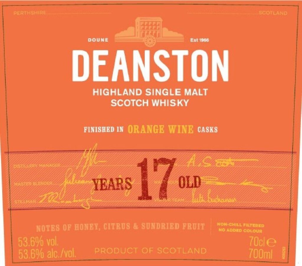 Fangen wir in den Highlands an: Dort bereitet die Brennerei Deanston die Veröffentlichung eines neuen 17 Jahre alten Whiskys vor, der ein Finish in Vino de Naranja Casks erhielt. Der Deanston 17 Years Old Finished in Orange Wine Cask wird mit 53,6% vol. Alkoholstärke und ohne Farbstoff und Kühlfiltration abgefüllt werden. Er soll Zitrusnoten, bittersüße Orangenaromen und solche von gerösteten Nüssen und sonnengereiften Früchten bieten, mit einem wachsigem Mundgefühl und einem langen, lebendigen Finish. Und so siehen die Etiketten aus: