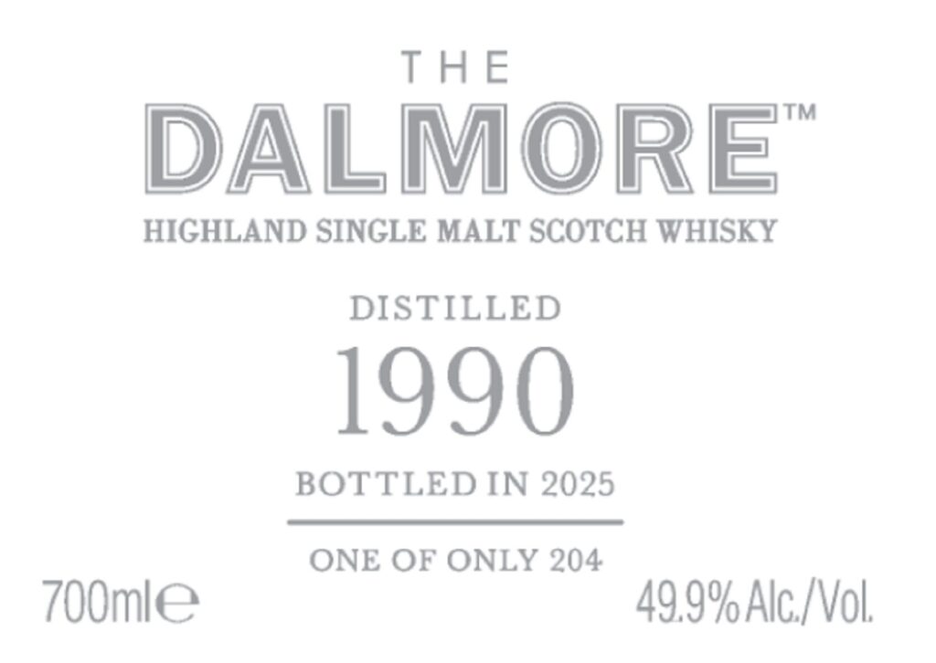 Zweite Neuheit ist ein Dalmore 1990, der in einer Auflage von 204 Flaschen erscheinen wird. Diese kleine Menge und die Abfüllstärke von 49,9% vol. lassen uns auf eine Einzelfassabfüllung tippen, die Abfüllmengen von 700ml deutet aber darauf hin, dass der 34 oder 35 Jahre alte Dalmore weltweit aufgelegt wird. Auch hier haben wir die Etiketten für Sie: