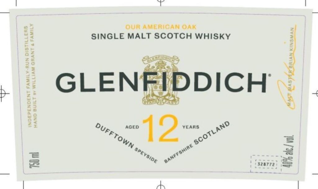 Der zweite Fund ist keine Neuheit, sondern im Grunde genommen DER Klassiker unter den Single Malts, nämlich der Glenfiddich 12 Jahre. Der scheint in absehbarer Zeit ein neues Kleid zu bekommen, das deutlich moderner wirkt als die alte Ausstattung. Hier das Etikett: