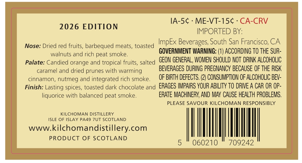 Wieder einmal haben wir beim Stöbern in der us-amerikanischen TTB-Datenbank zwei neue Einträge gefunden, die uns interessant erschienen sind. Zum Ersten ist da ein neuer Kilchoman Loch Gorm 2026 Edition zu sehen, 10 Jahre alt und mit 46% vol. Alkoholstärke abgefüllt – mit recht interessanten Tasting Notes am Rückseitenetikett:
