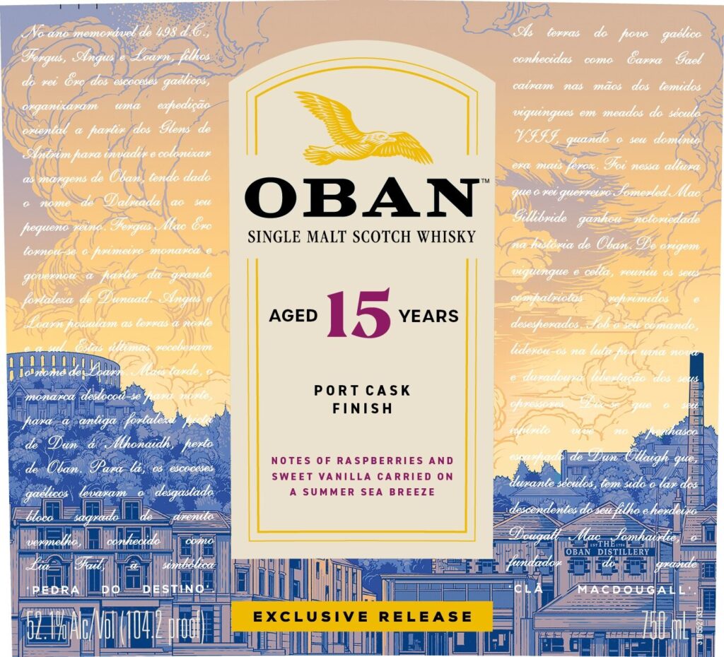 Last but not least ein neuer Oban, der aber aller Vorausicht nach eine us-exklusive Ausgabe sein wird, so wie sein Vorläufer. Der Oban 15yo Port Cask Finish kommt interessanterweise mit portugiesischen Seitentexten und berichtet über einen Überfall von Fergus, Angus und Loarn, Söhne des gälischen Schottenkönigs Erc, auf Oban im Jahr 498 nach Christus – und auf den Clan Macdougall, der die Oban Distillery gründete.