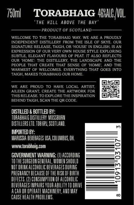 „Aged in Bourbon, Refill Bourbon & Madeira Casks“, so definiert das eingereichte Etikett des Torabhaig Taigh die neue Abfüllung der Brennerei Torabhaig. Dieses wurde von der lokalen Künstlerin Aileen Grant gestaltet, und sieht so aus: