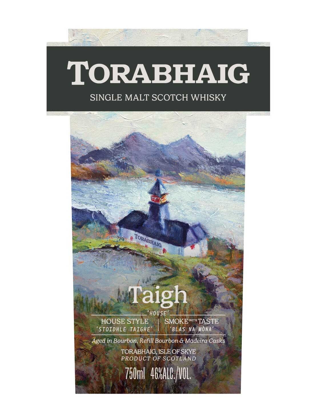 „Aged in Bourbon, Refill Bourbon & Madeira Casks“, so definiert das eingereichte Etikett des Torabhaig Taigh die neue Abfüllung der Brennerei Torabhaig. Dieses wurde von der lokalen Künstlerin Aileen Grant gestaltet, und sieht so aus: