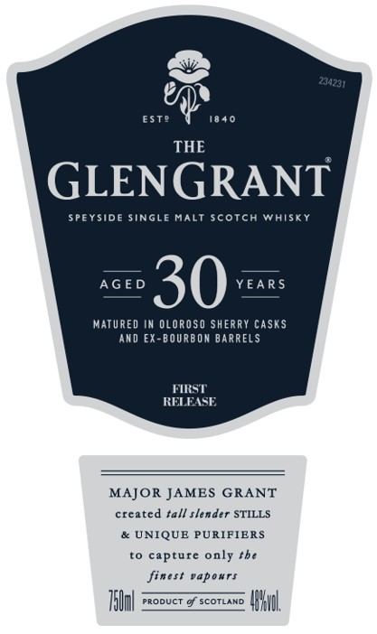Es folgt eine neue Abfüllung aus der Speyside-Brennerei Glen Grant: Dort wird man einen 30 Jahre alten Whisky auflegen, und der wird, da er als First Edition bezeichnet wird, wohl in die Core Range kommen. Der Glen Grant 30yo First Edition wird mit 48% abgefüllt und stammt aus Oloroso- und Ex-Bourbin Casks. Auch hier können wir Ihnen die Etiketten zeigen: