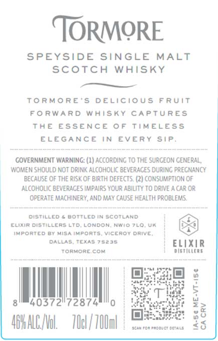 Gestern stellten wir Ihnen mit Tormore 16 yo Sherry Cask eine (möglicherweise) kommende Abfüllung dieser Speyside-Brennerei unter den neuen (seit 2022) Besitzern Elixir Distillers vor. Nun konnten wir die Etiketten einer weiteren Tormore-Abfüllung in der US-amerikanischen TTB-Datenbank entdecken. Tormore 12 yo erscheint mit 46 % Vol., und teilt außer des neuen Claims „Tormore’s delicious fruit forward whisky captures the essence of timeless elegance in every sip“ keine weiteren Informationen mit. So sehen die Label aus: