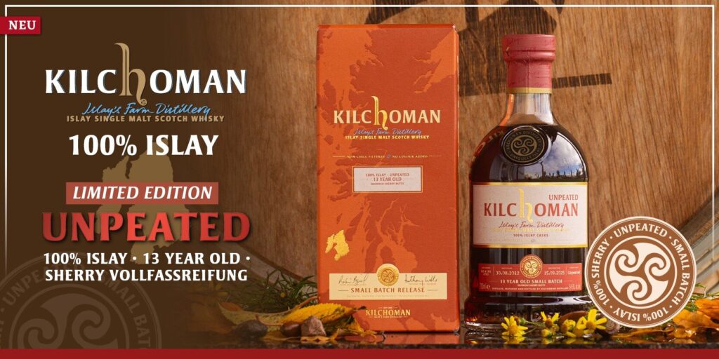 Es ist immer wieder interessant, wenn eine Destillerie für eine spezielle Abfüllung ihre gewohnten Pfade verlässt. So zum Beispiel die Farmdestillerie Kilchoman auf Islay, die nun nach der äußerst begehrten Abfüllung im Vorjahr nun die zweite Ausgabe des Kilchoman Unpeated auf den Markt bringt – 13 Jahre alt und mit kompletter Reifung im Sherryfass. Er ist eine deutschlandexklusive Sonderausgabe der Islay-Brennerei, in einer Limitierung auf 1315 Flaschen.