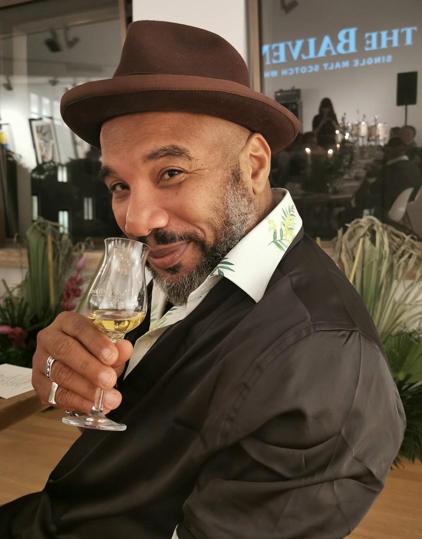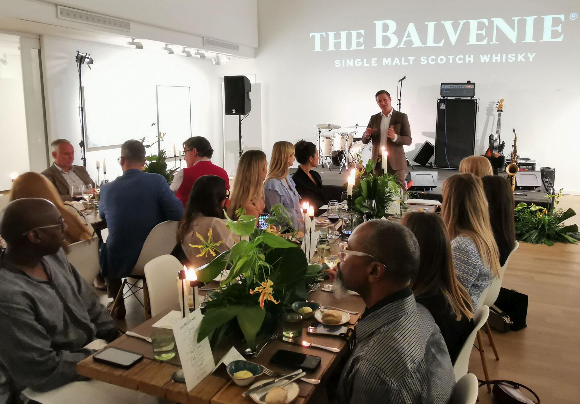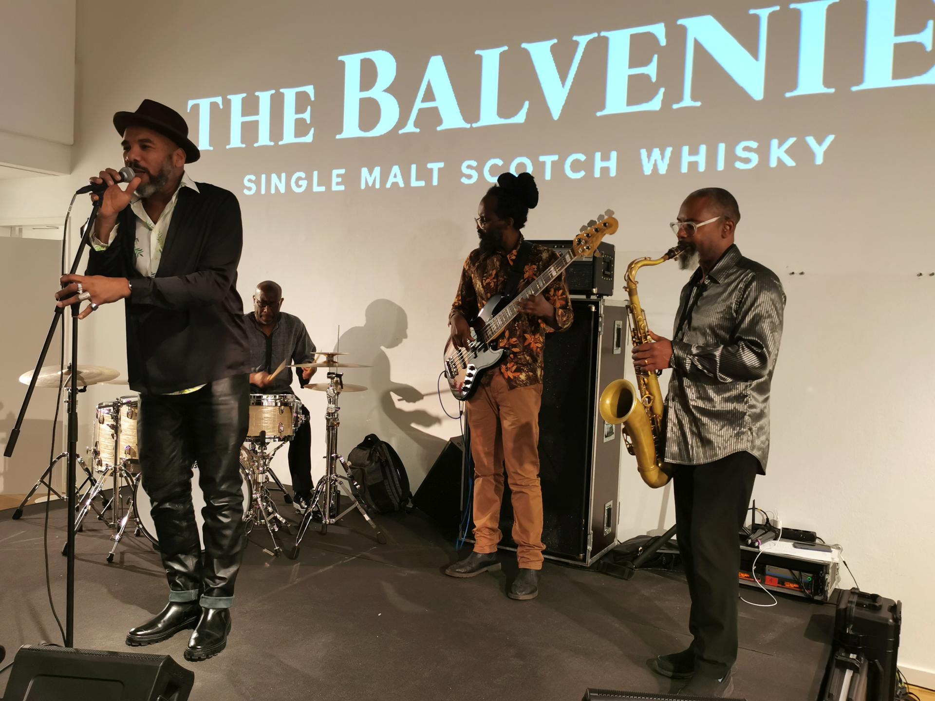 Ein speziell für dieses Event kreierter Cocktail mit dem The Balvenie Carribean Cask 14 Years Old bot eine perfekte Einstimmung. Über karibisch nuancierte Speisen wurde der poetisch-musikalische Höhepunkt des Abends angesteuert. Der Poet, Autor, Dozent und Musiker Anthony Joseph, 1966 in Trinidad geboren und 1989 nach Großbritannien ausgewandert, bot mit seinen Musikern eine Fusion von Jazz, karibischen Klängen, Poesie und Surrealismus dar. Dies passte sehr zur ausgestellten Kunst bei Karl & Faber, aber vor allem wurde der Spirit Trinidads für alle Gäste authentisch fühlbar.