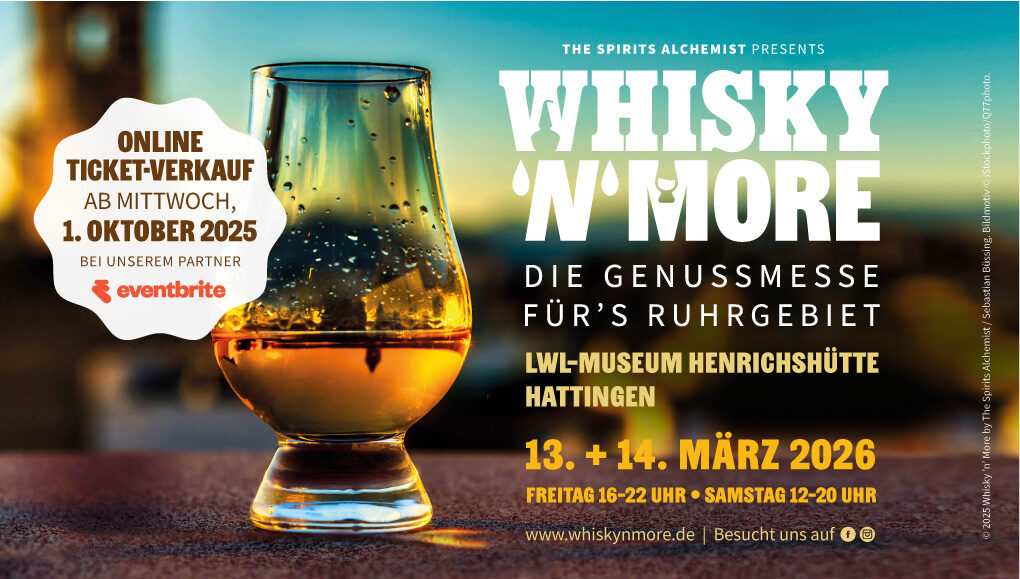 Die Whisky ’n‘ more, die Genussmesse für das Ruhrgebiet, findet im kommenden Jahr am 13. und 14. März statt. Veranstaltungsort dieses Event ist erneut das LWL-Museum Henrichshütte Hattingen. Tickets für diese Messe können Sie sich bereits ab morgen sichern, was Sie bei der Whisky ’n‘ more 2026 erwartet, können Sie hier in der Aussendung des Veranstalters Sebastian Büssing nachlesen: