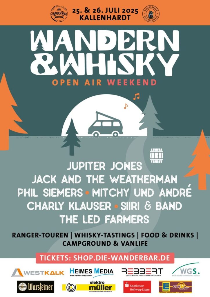 Am 25. und 26. Juli 2025 verwandeln die WanderBar / Sabrina Knippschild und die Sauerländer Edelbrennerei das idyllische Bergdorf Kallenhardt erneut in eine Bühne für alle Sinne. Beim Wandern & Whisky Open Air Weekend erwartet die Besucher ein einmaliges Zusammenspiel aus Naturerlebnis, Musikvielfalt und kulinarischen Highlights – in gemütlicher, familiärer Atmosphäre.
