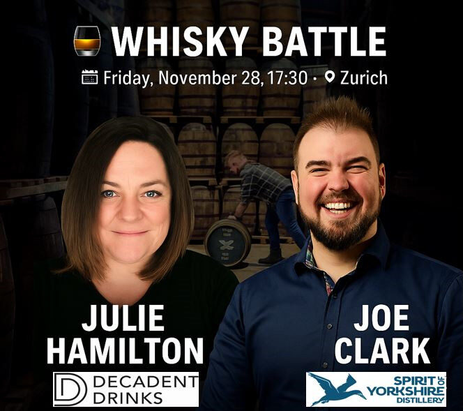 Am Freitag, 28. November, 17:30 Uhr steigt am Whisky & Music Festival Zürich das Whisky Battle: Decadent Drinks vs. Spirit of Yorkshire – ein interaktives Tasting-Duell, bei dem das Publikum den Champion kürt.