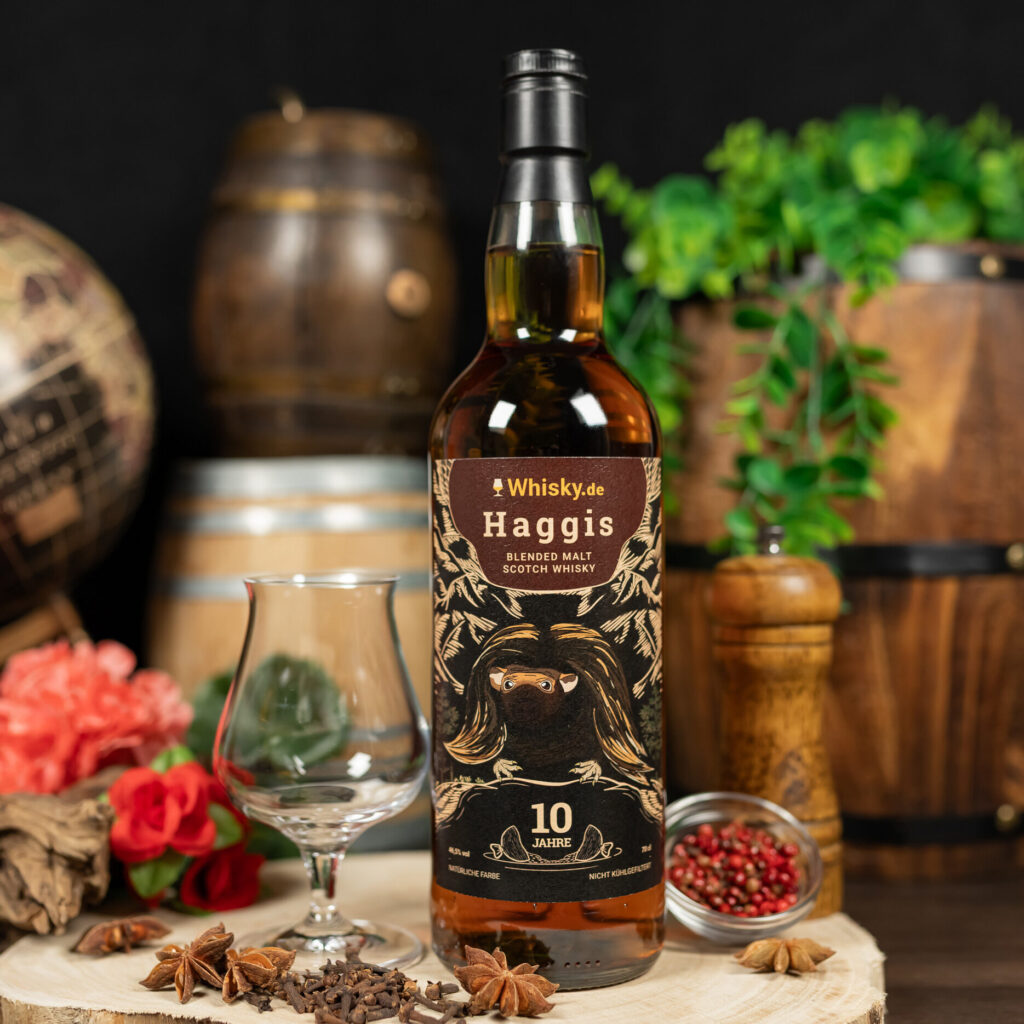 Die auf zehn Jahre gereifte Blended Whisky-Komposition wurde in einem kreativen Entwicklungsprozess von Whisky.de selbst kreiert und spiegelt die Essenz schottischer Geschmackstradition wider. Mit einer ausgewogenen Kombination aus Würze und feiner Süße vereint der „Haggis“ kulinarische und kulturelle Anklänge – ganz in Anlehnung an das berühmte Nationalgericht gleichen Namens.