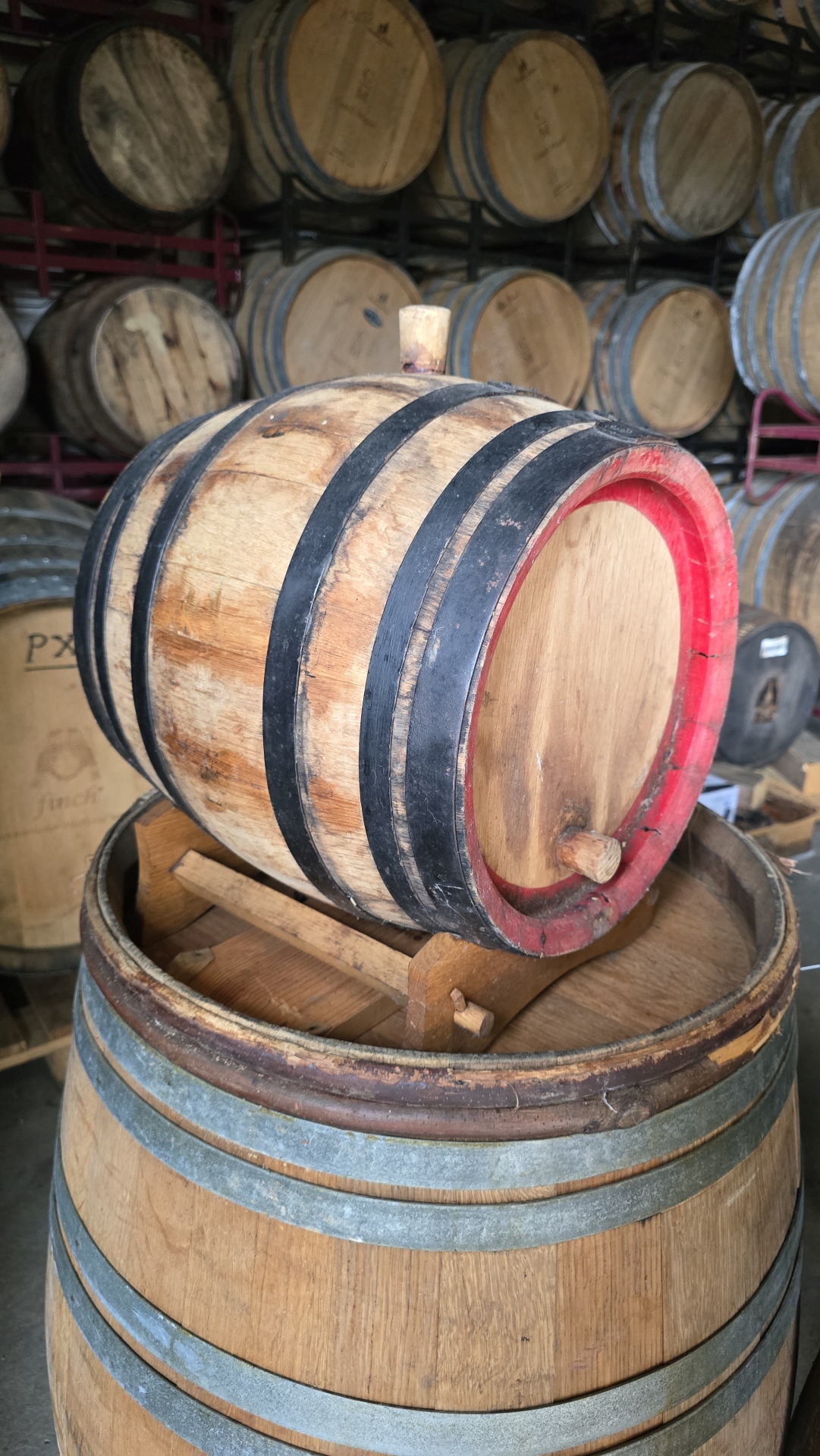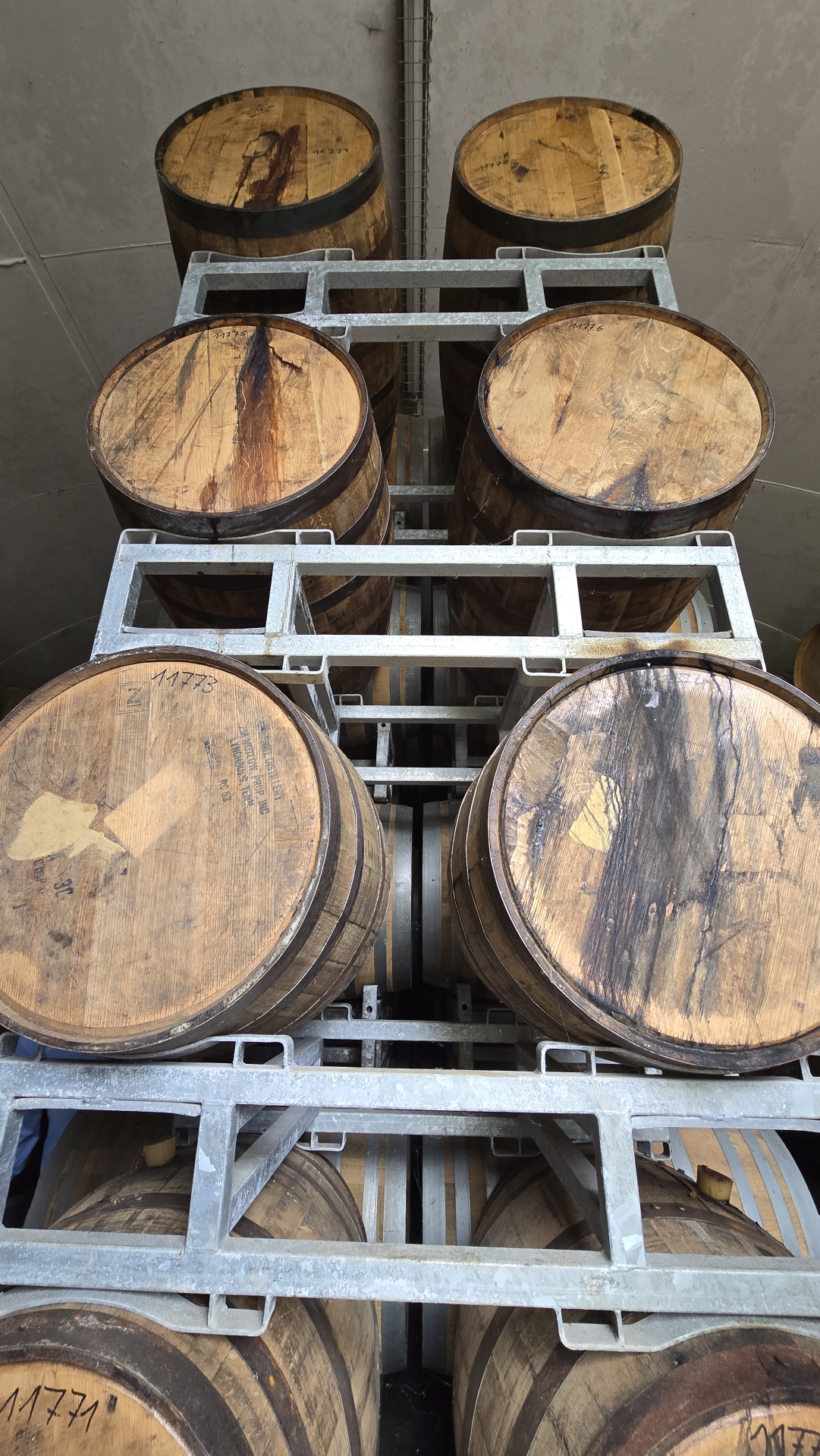 Zu Beginn hat Hans-Gerhard Fink auch mit den kleinen 30l-Fässern experimentiert, aber diese sind extrem schwierig in der Fassführung und fangen schnell an, den Whisky zu überholzen. Für eigene Fässer mag das gut sein, für längere Lagerung nicht.
