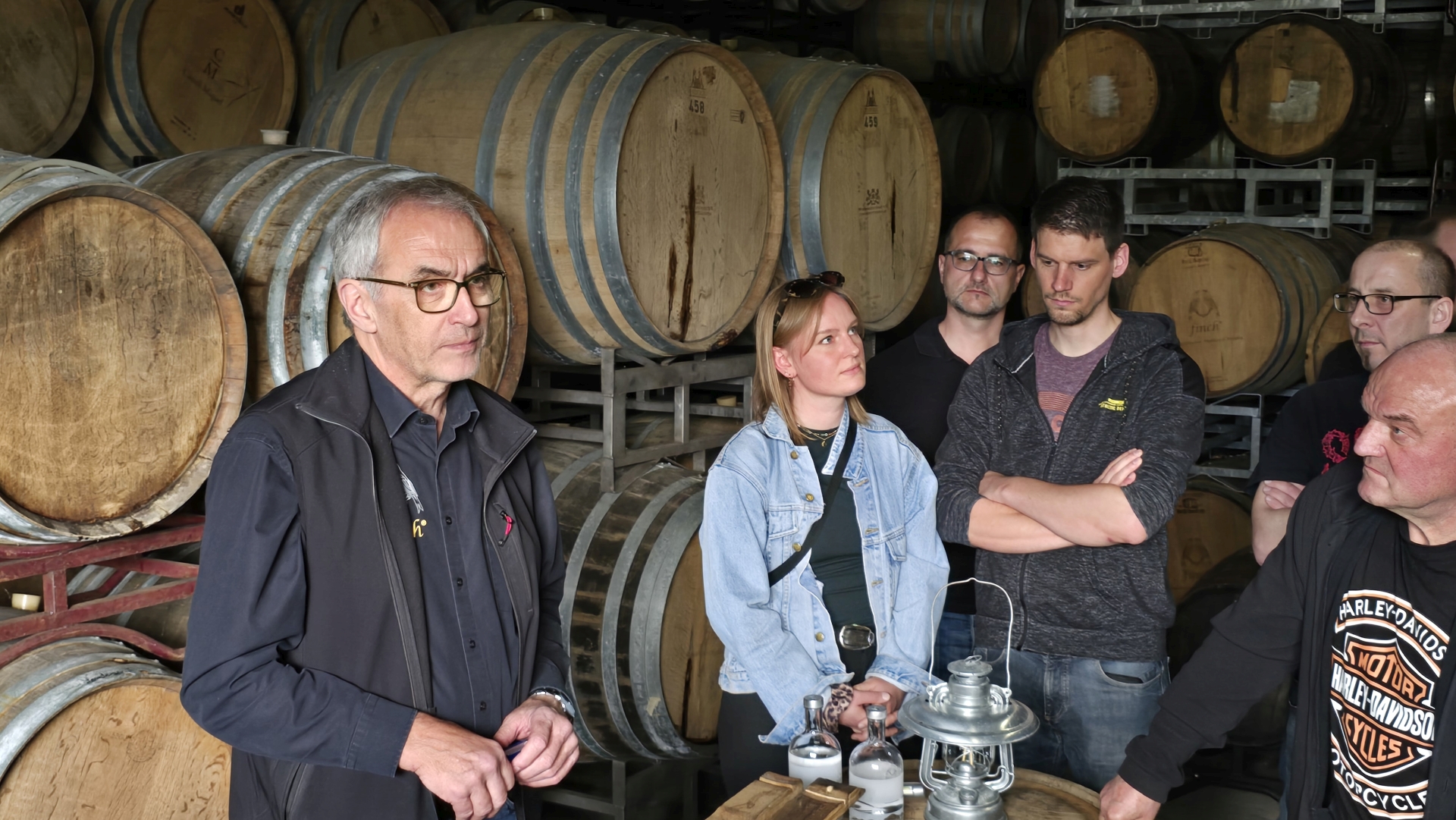 Nach der Brennerei ging es zum ehemaligen französischen Munitionsdepot, das finch nun als Ganzes besitzt und zum Teil als Fasslager benutzt. Sie waren übrigens die ersten mit dieser Lagermethode, noch vor St. Kilian
