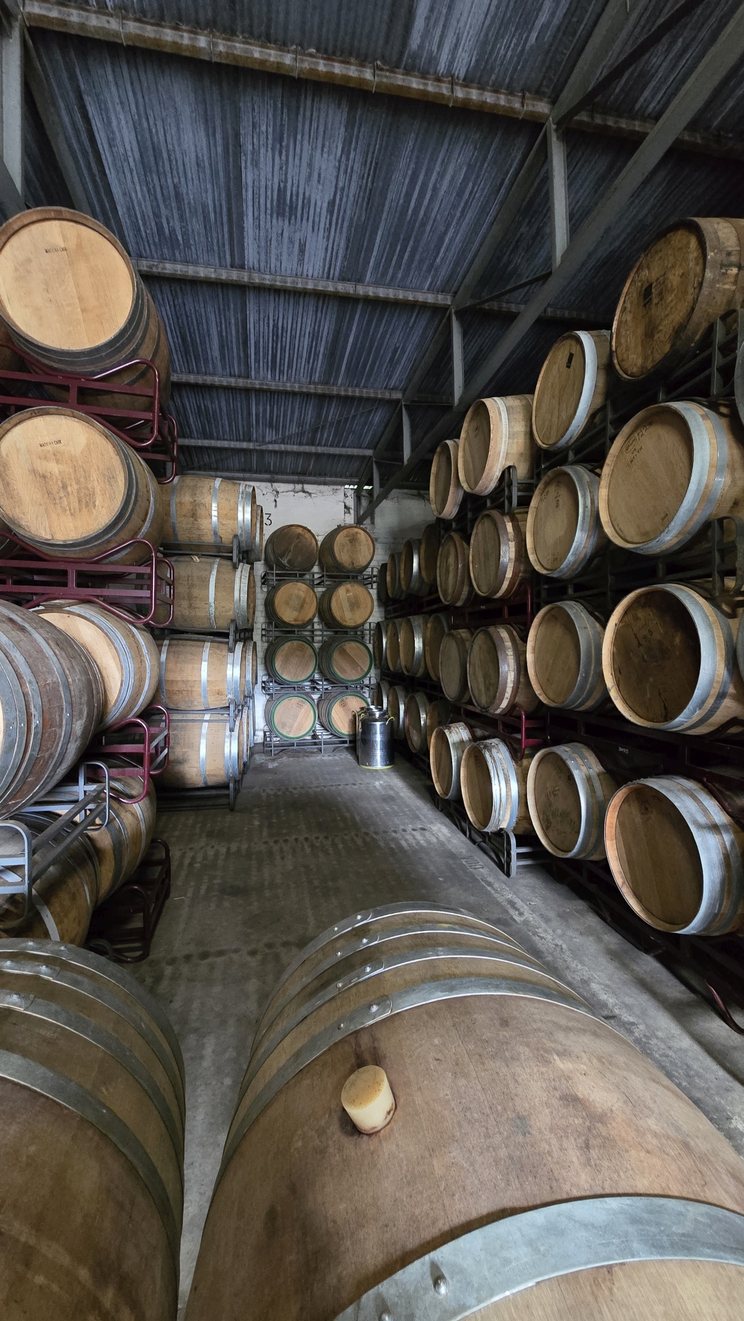 Danach wurden nur mehr leere Fässer nach oben gebracht, mit dem Spundloch etwas zur Seite geneigt - sie werden im Regal befüllt und entleert, der Inhalt kommt und geht in Transporttanks mit ca. 1000l Fassungsvermögen