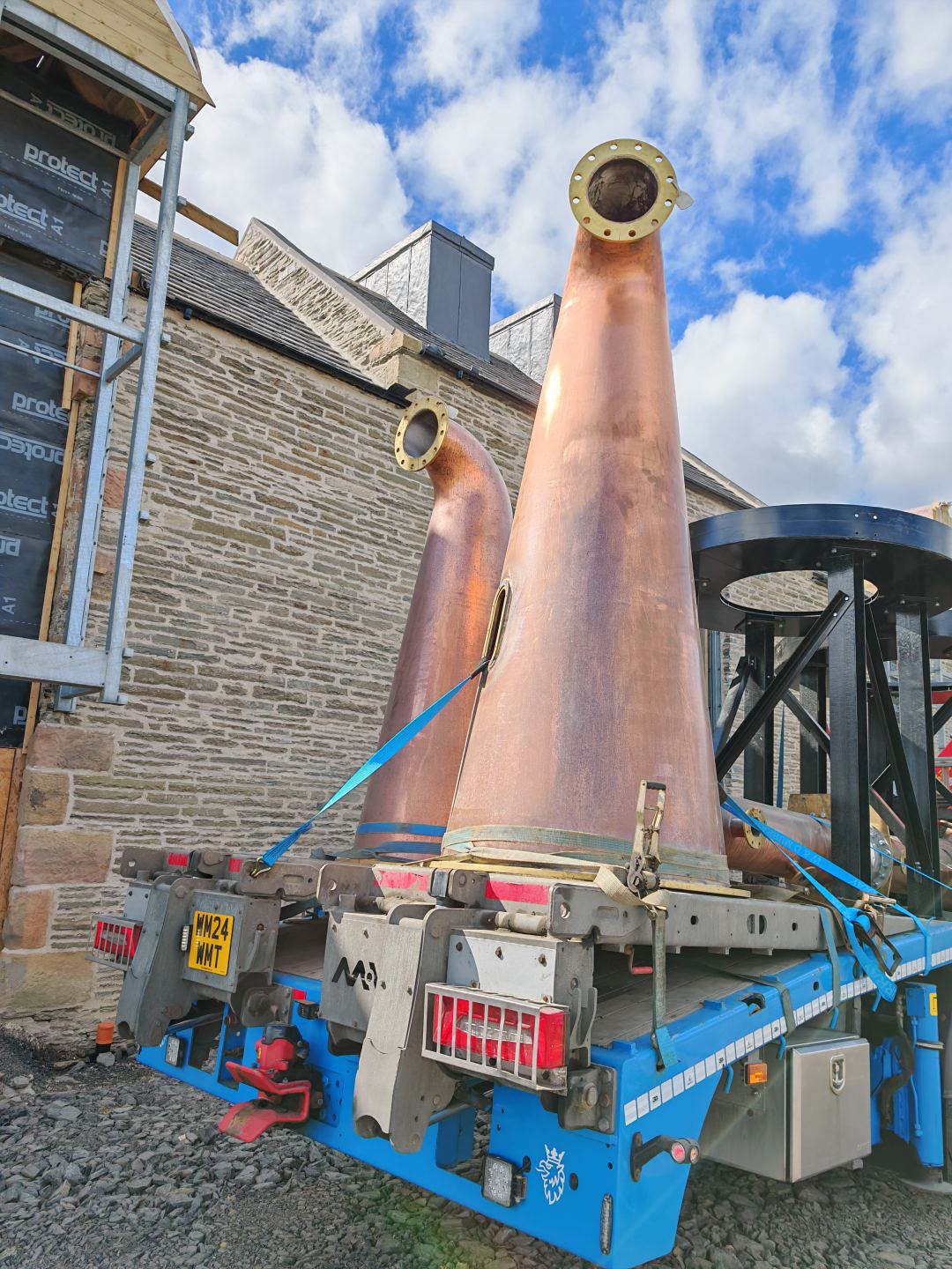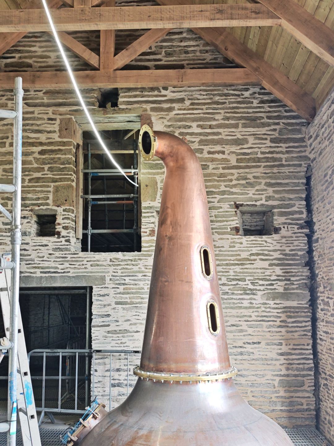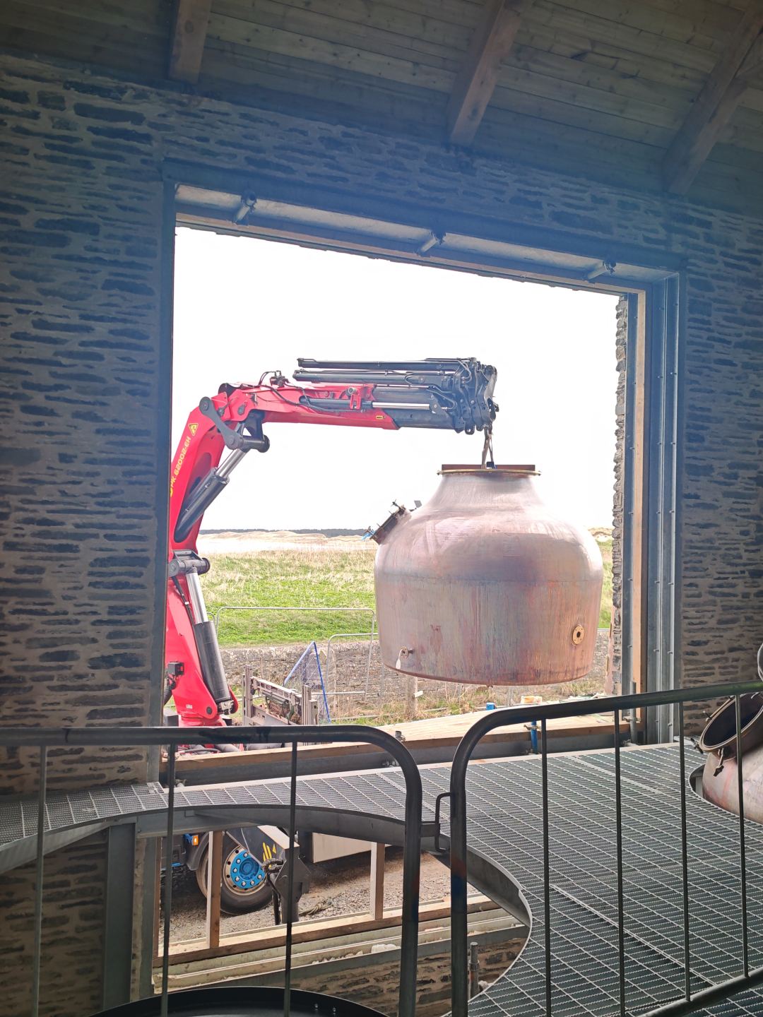 Übrigens: Mit dem Einbau der Stills geht eine Ära zu Ende: Die Stills sind die allerletzten, die das Label der Speyside Copper Works tragen werden (man hat dort zum Beispiel auch die Stills von Ardnahoe, die der Port of Leigh Distillery oder jene der neuseeländischen Scapegrace Distillery gebaut).
