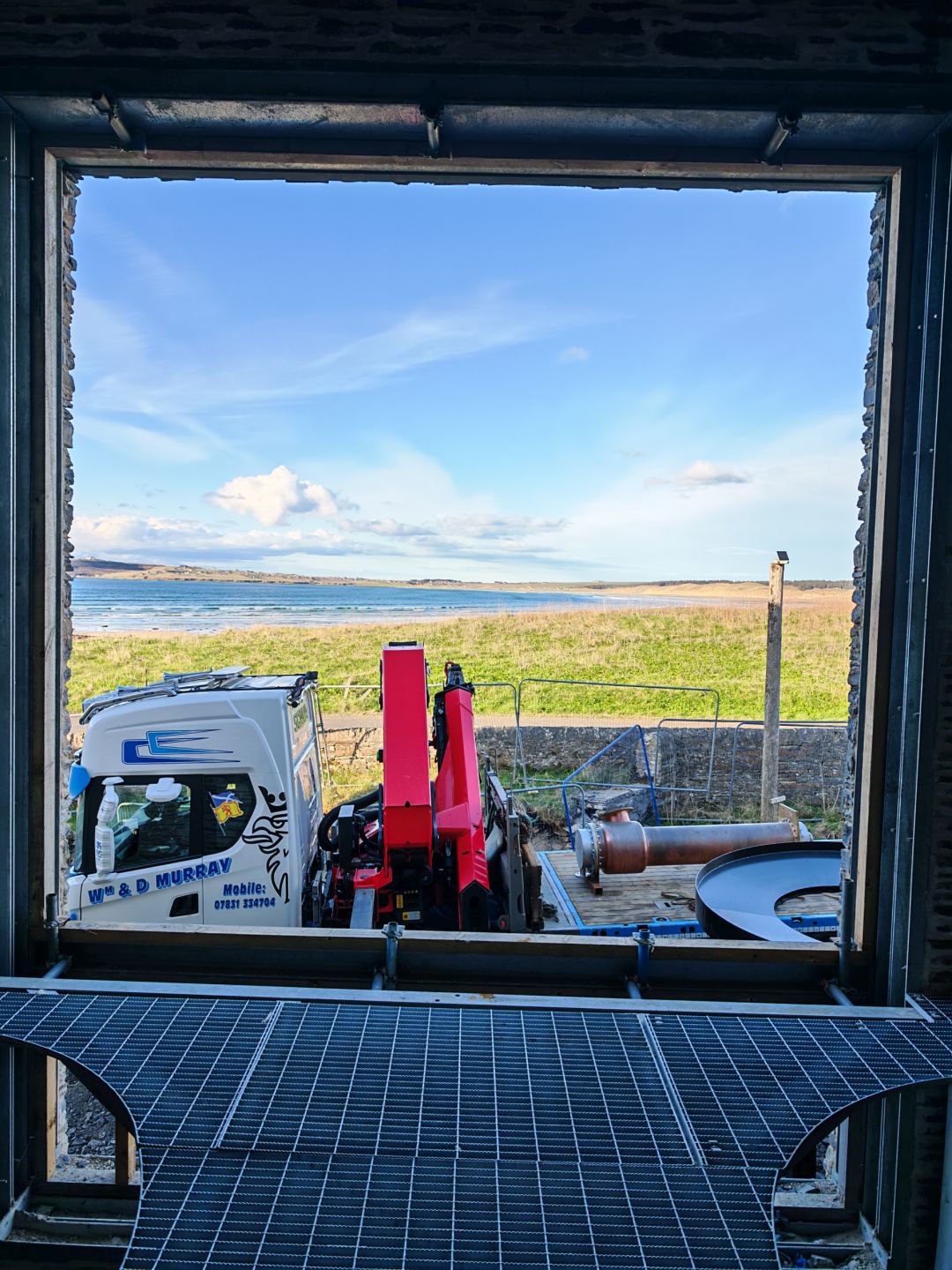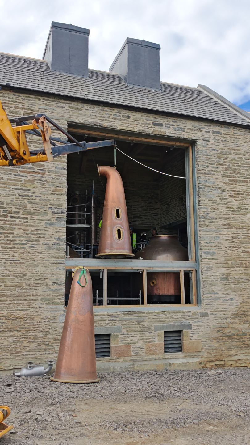 Hier also die Bilder des Einbaus der Stills in die Dunnet Bay Distillery, die in der liebevoll restaurierten Castletown Mill aus dem 19. Jahrhundert eingebaut wurden, einige davon exklusiv für unsere Seite (alle Fotos (c) Martin Murray):
