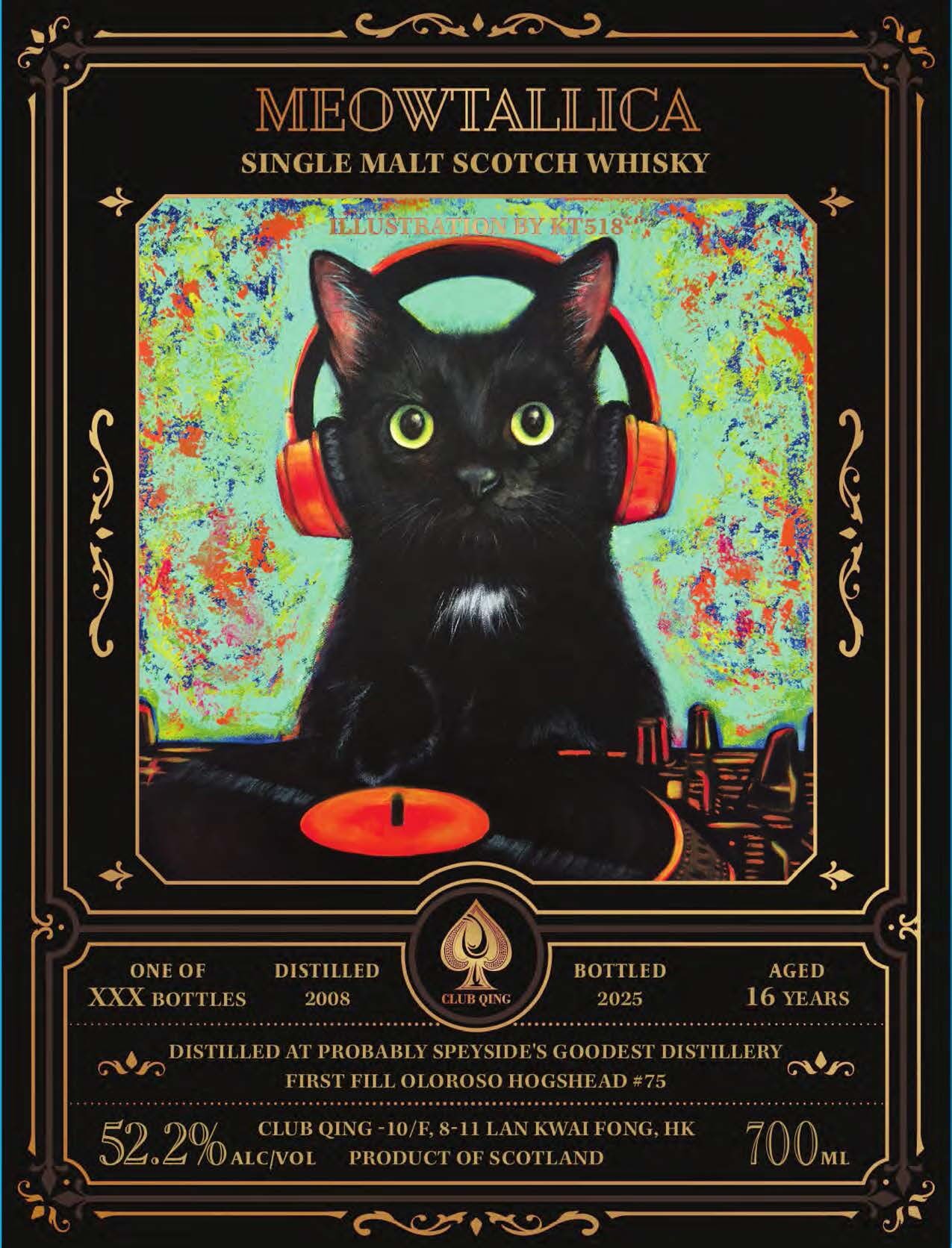 Eine dieser Serien ist Meowtallica. Die „Meowtallica“-Serie präsentiert fantasievolle Illustrationen der fiktiven Katzen-Rockband gleichen Namens, gestaltet von der Künstlerin @kt518.art. Die ersten beiden Ausgaben zeigen den Gitarristen „Ten Li“ (Ben Nevis) und den Schlagzeuger „Oreo“ (Orkney) – beide beides übrigens Katzen des Club Qing-Gründers.