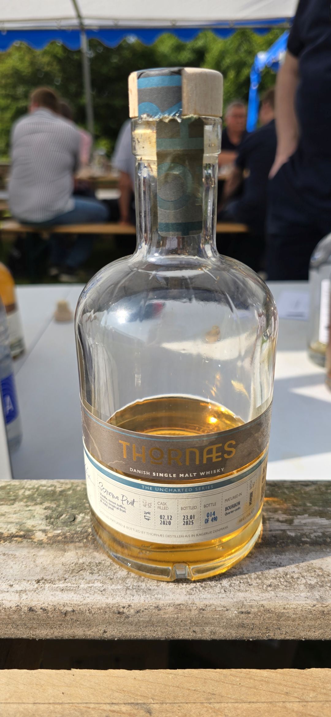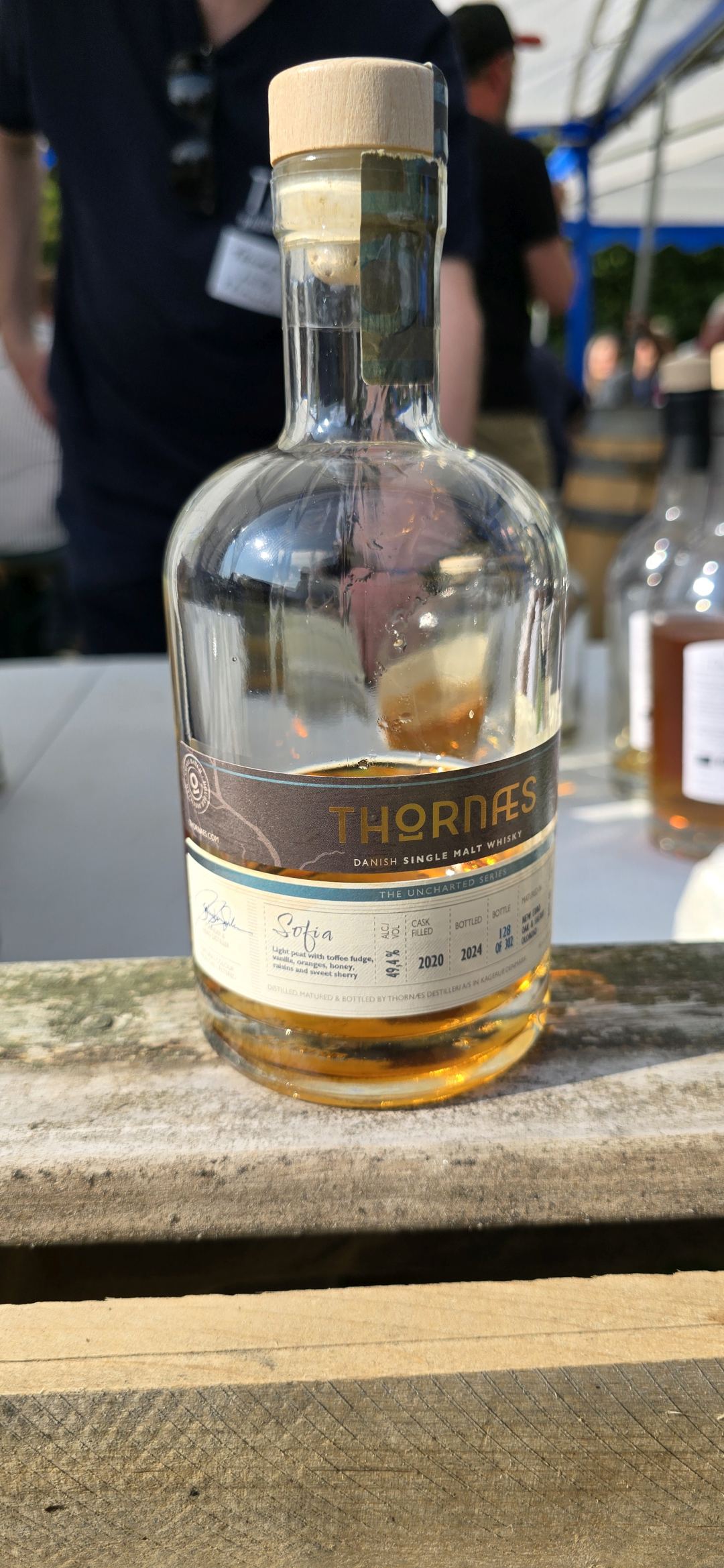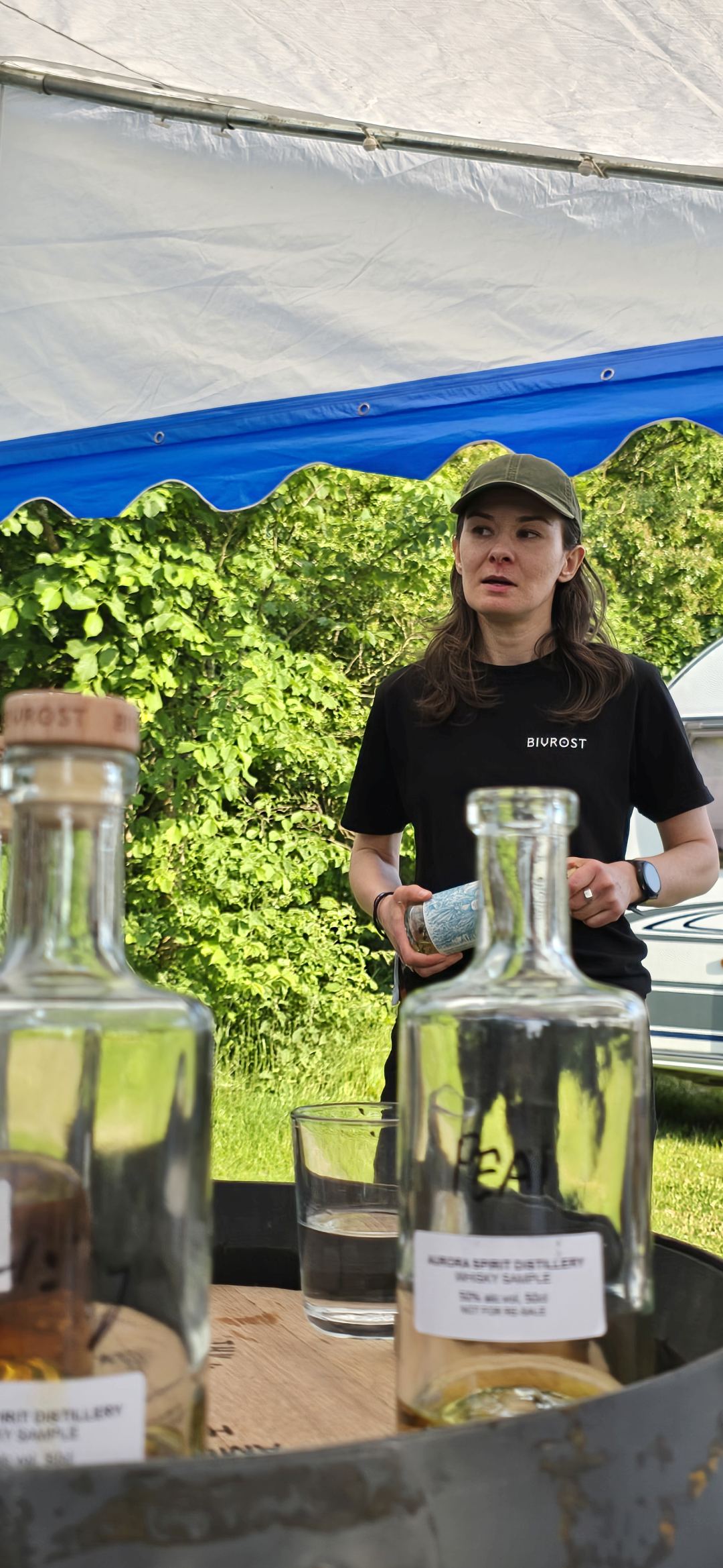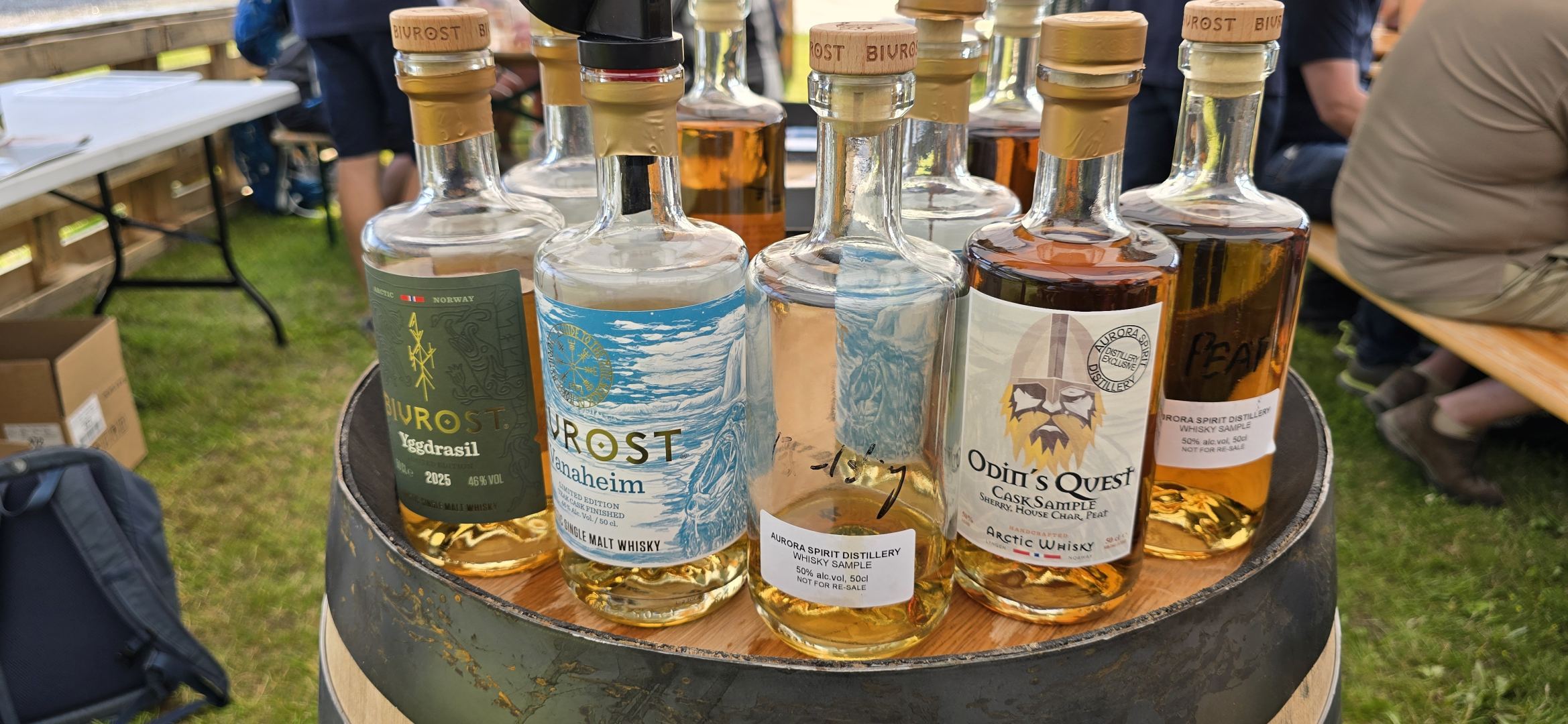 Das letzte Tasting im Zelt gehörte der nördlichsten Destillerie der Welt: Aurora Distillery mit ihrem Bivrost Whisky. In der Mitte ein Sample eines Whiskys aus nordic barley, der über dem Polarkreis angebaut wurde.